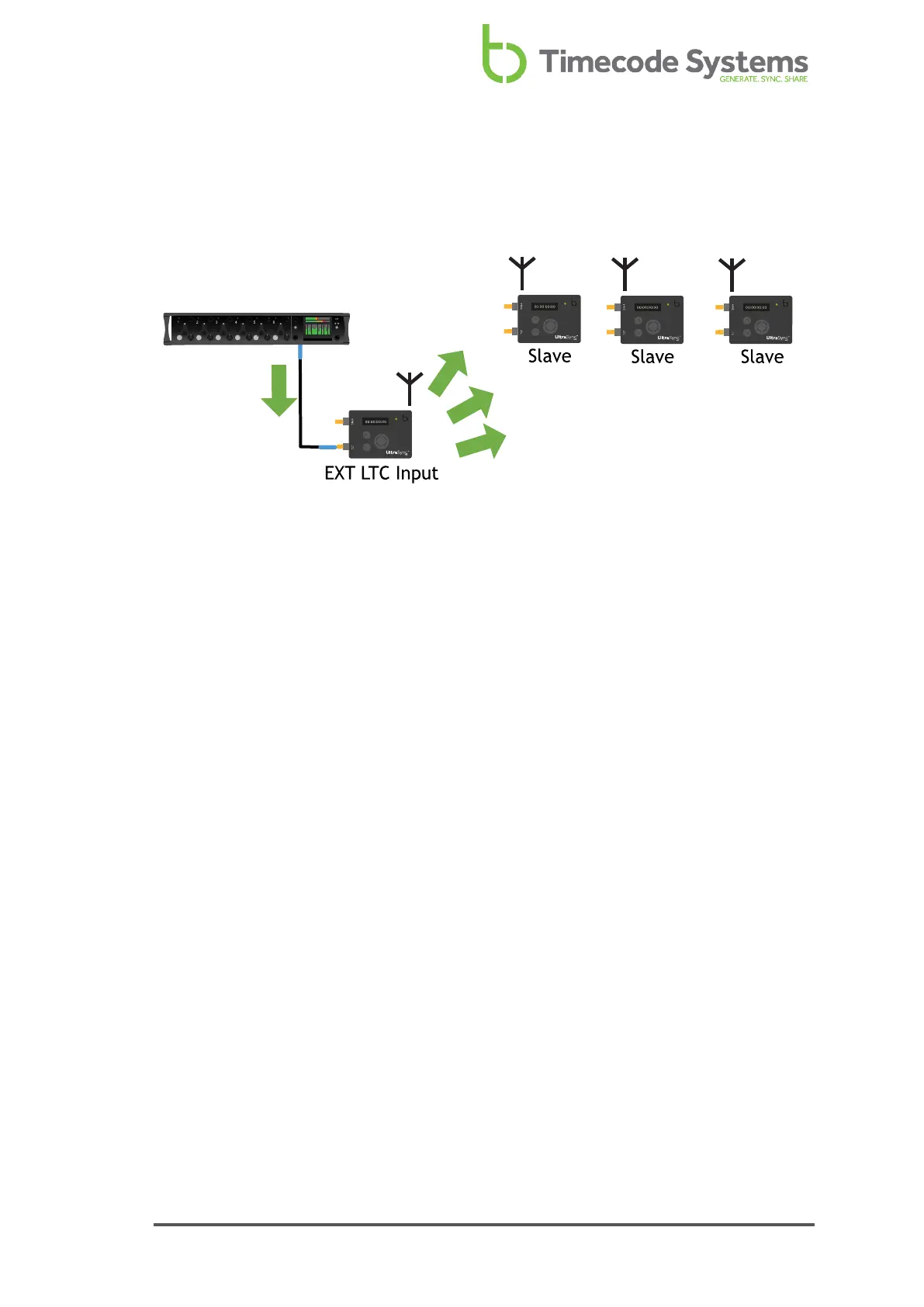The most common way to using EXT LTC Input mode is to set your UltraSync ONE to