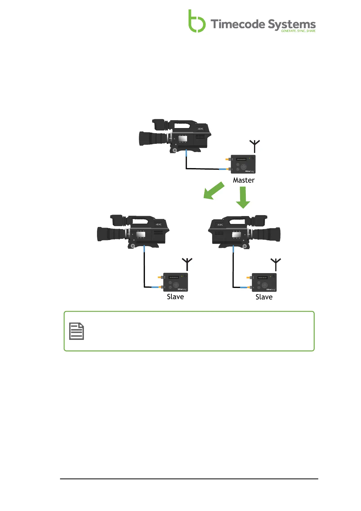 timecode source, the UltraSync ONE has to be set to run in Master TX mode.