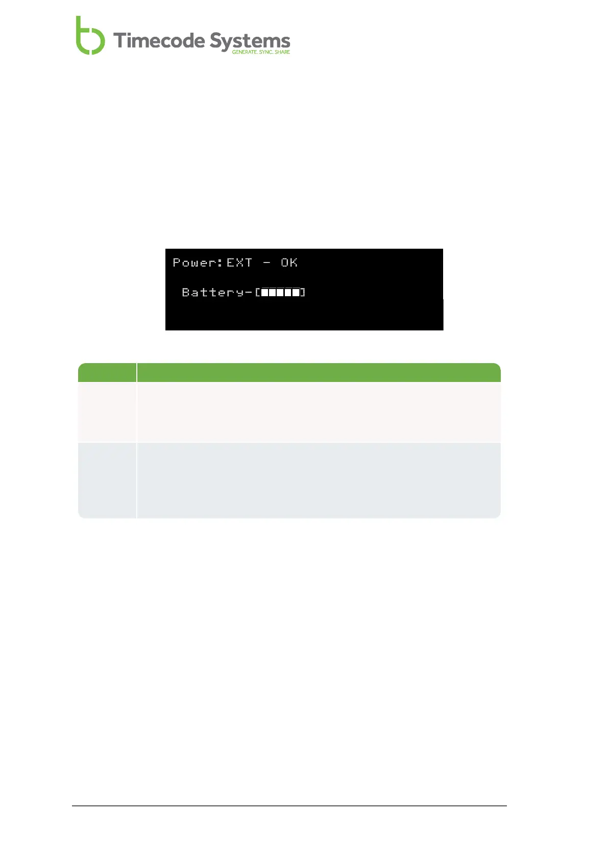 Power The status of any external power supply. EXT-OFF means there is no