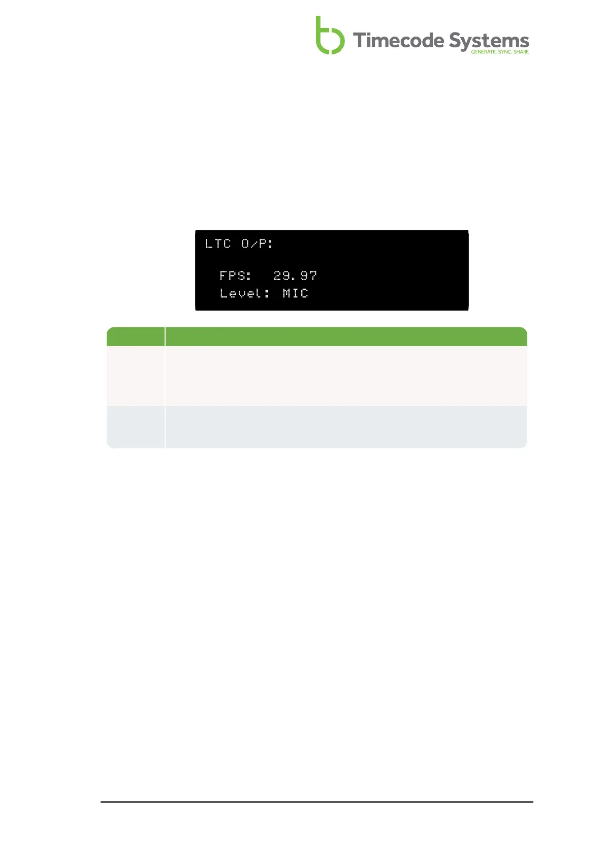 Level The voltage level of the LTC output (see Set the SYNC Output on page