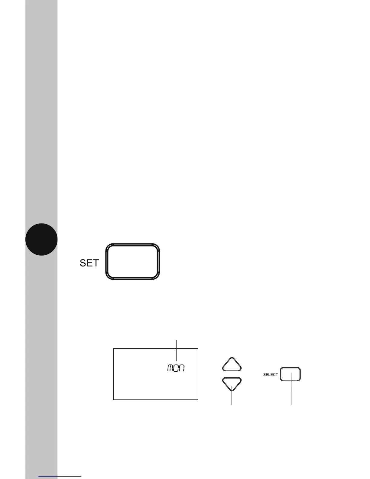 10.2 The Day of the week will flash (e.g. Mon), use the Up/Down arrow