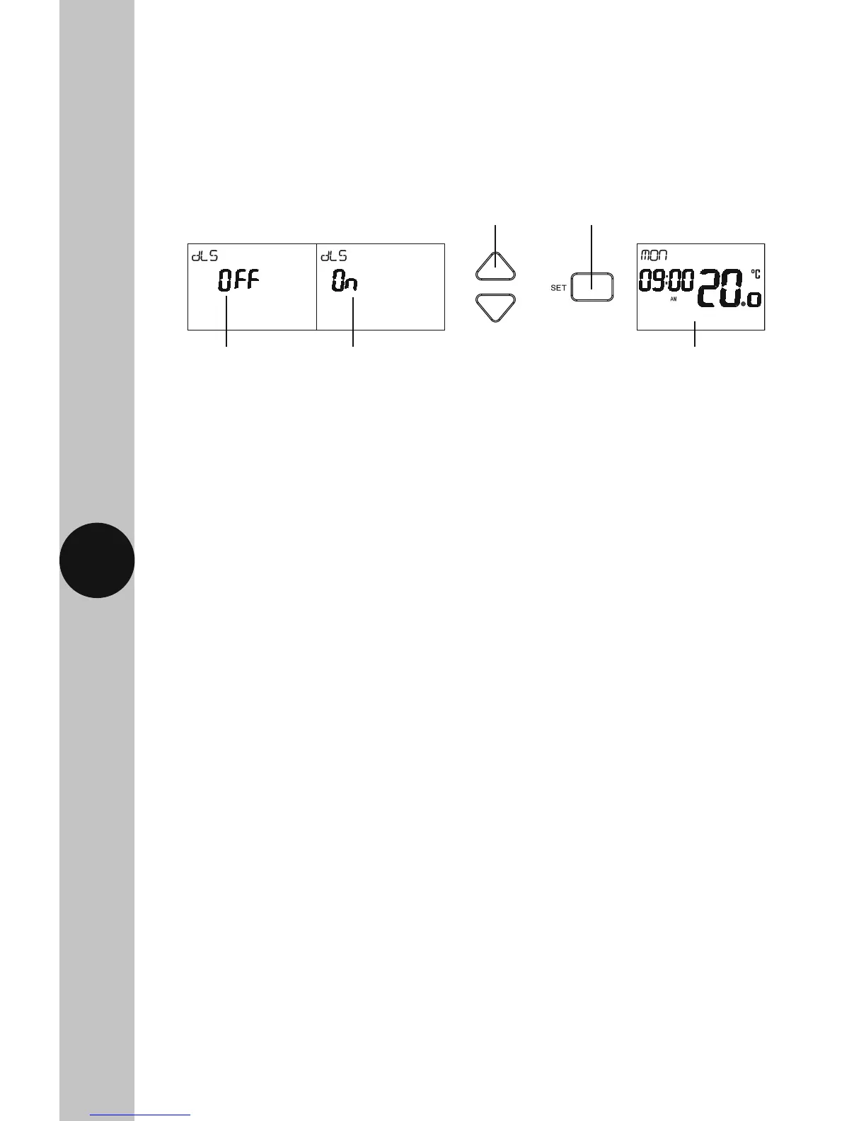 • The daylight saving option (GMT=OFF/BST=ON) will flash, by default this