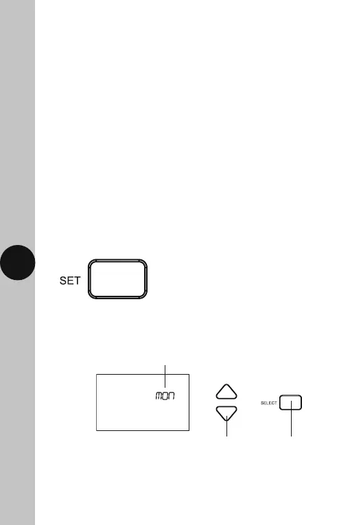 10.2 The Day of the week will flash (e.g. Mon), use the Up/Down arrow