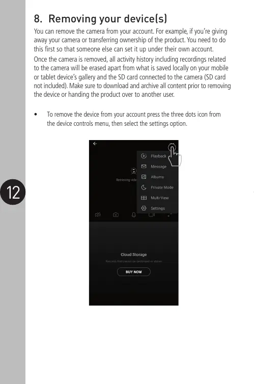 • To remove the device from your account press the three dots icon from
