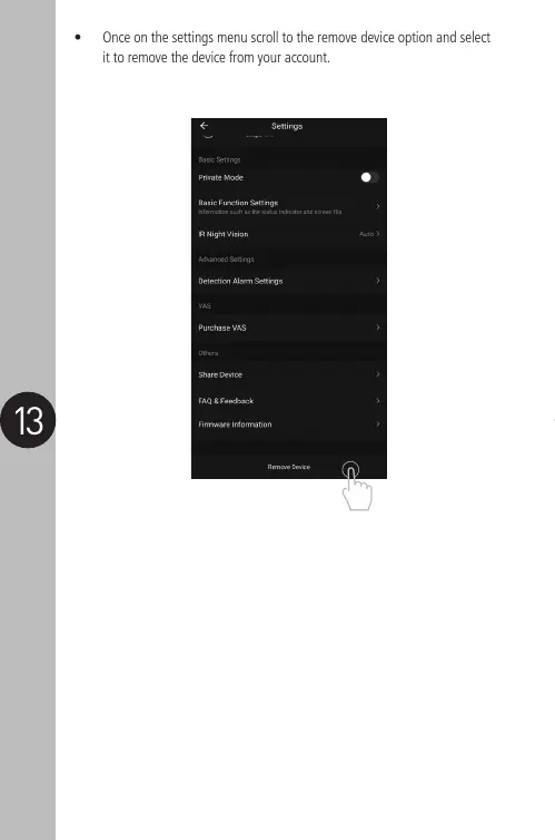 Once on the settings menu scroll to the remove device option and select