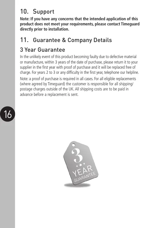 (where agreed by Timeguard) the customer is responsible for all shipping/