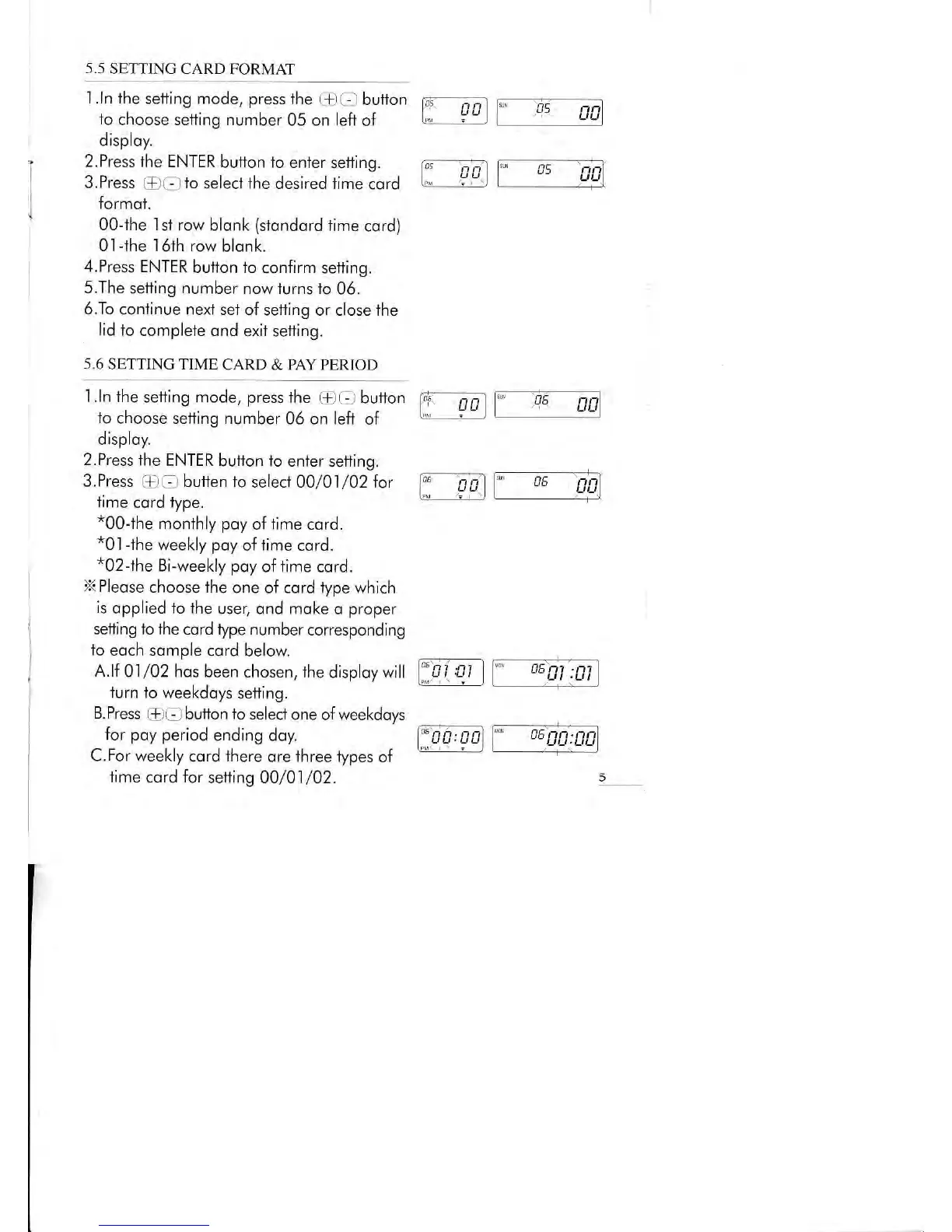 Timemaster TM720 - Setting Card Format; Setting Time Card & Pay Period