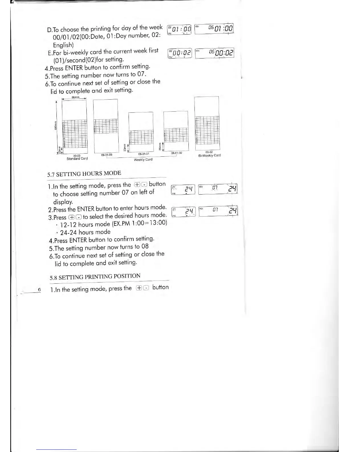 Timemaster TM900 - Setting Hours Mode; Setting Printing Position