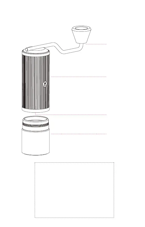 TIMEMORE CHESTNUT X lite - Parts & Functions; Handle & Lid; Body; Dial