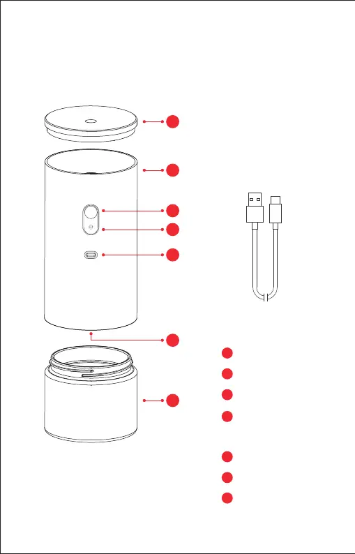 TIMEMORE Grinder go - Product Components Description; Cover Lid; Grinder Body; Switch Button