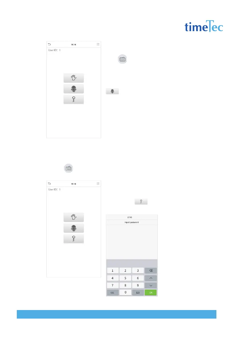 Click the button on the main screen to enter the 1:1 password verification mode.