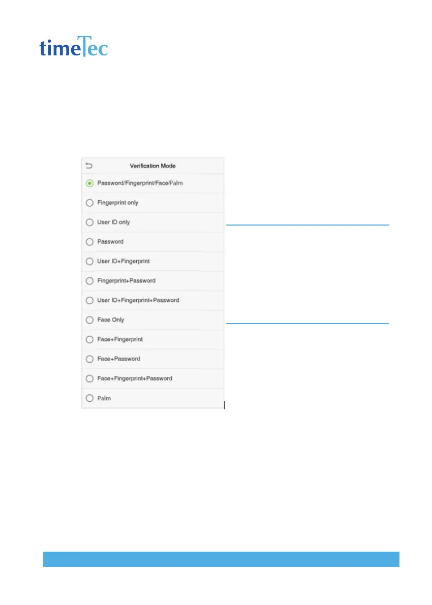 tion methods. A total of 7 different verification combinations can be used, as shown