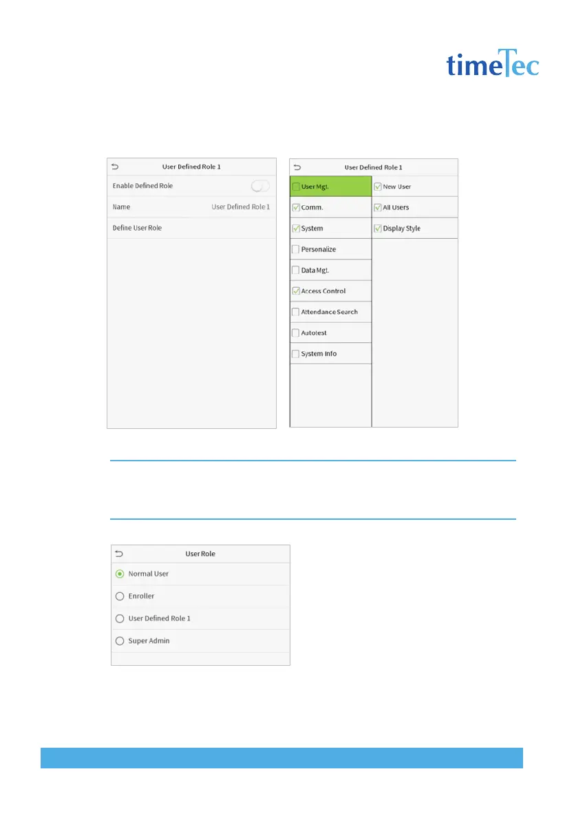 to select the features in sub-menus. If the device has a role enabled, you may assign the roles you set to users by