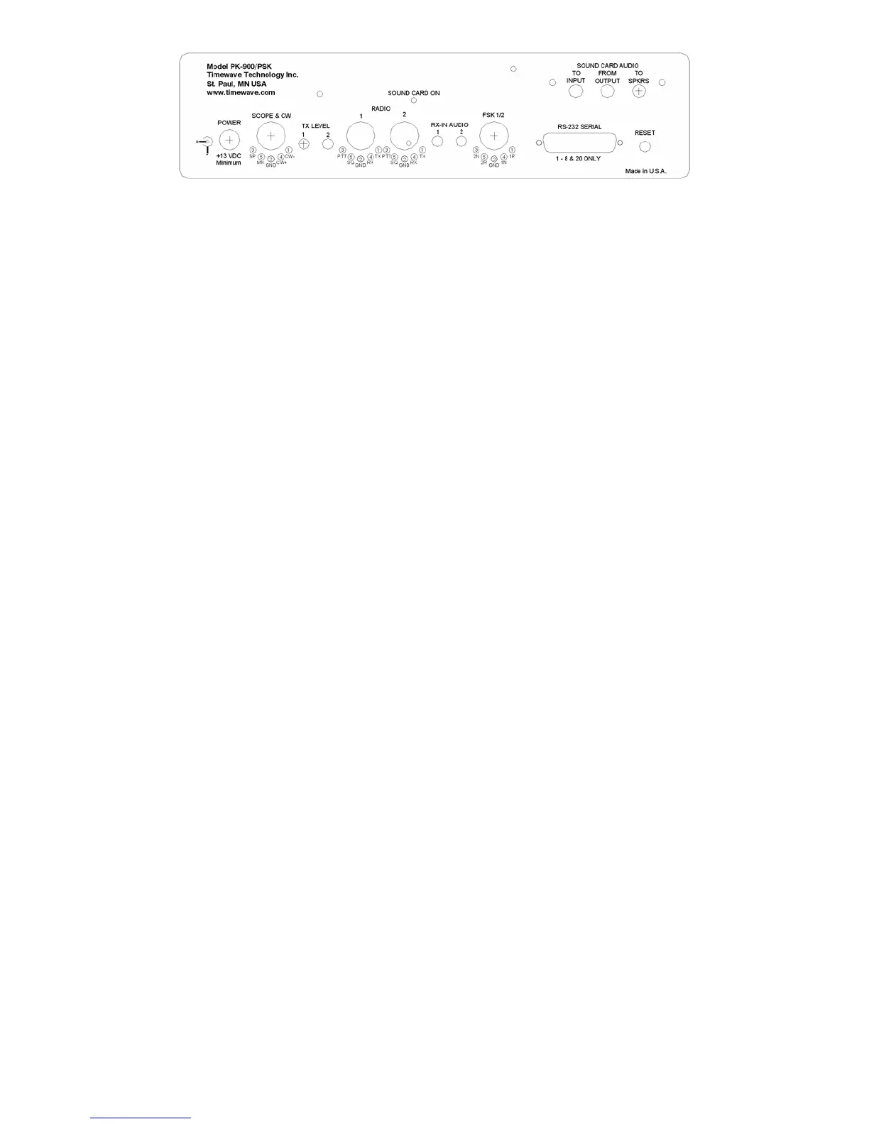 Figure 2-2 PK-900 Rear Panel Connections and Controls