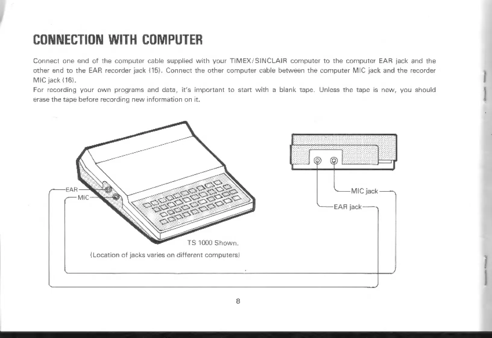 Timex Sinclair 2020 Computer Program Recorder - Connection with Computer