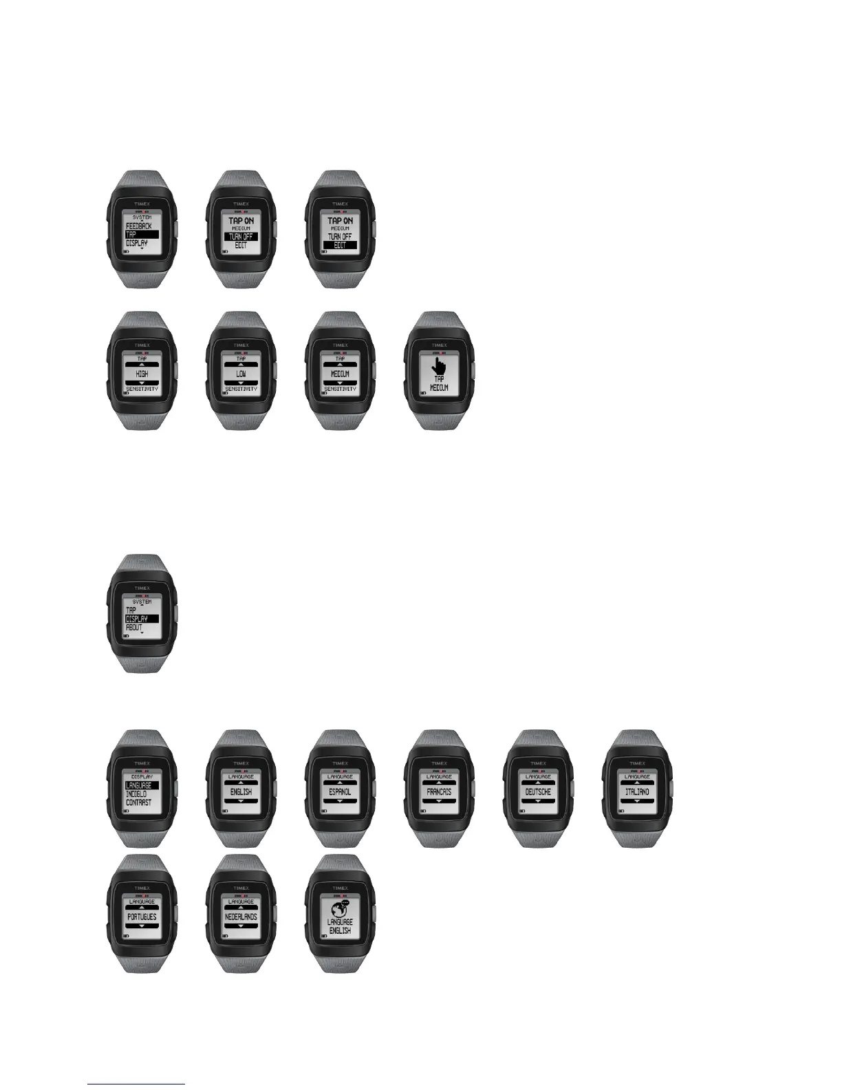 Le impostazioni del display includono: Lingua, Indiglo e Contrasto.