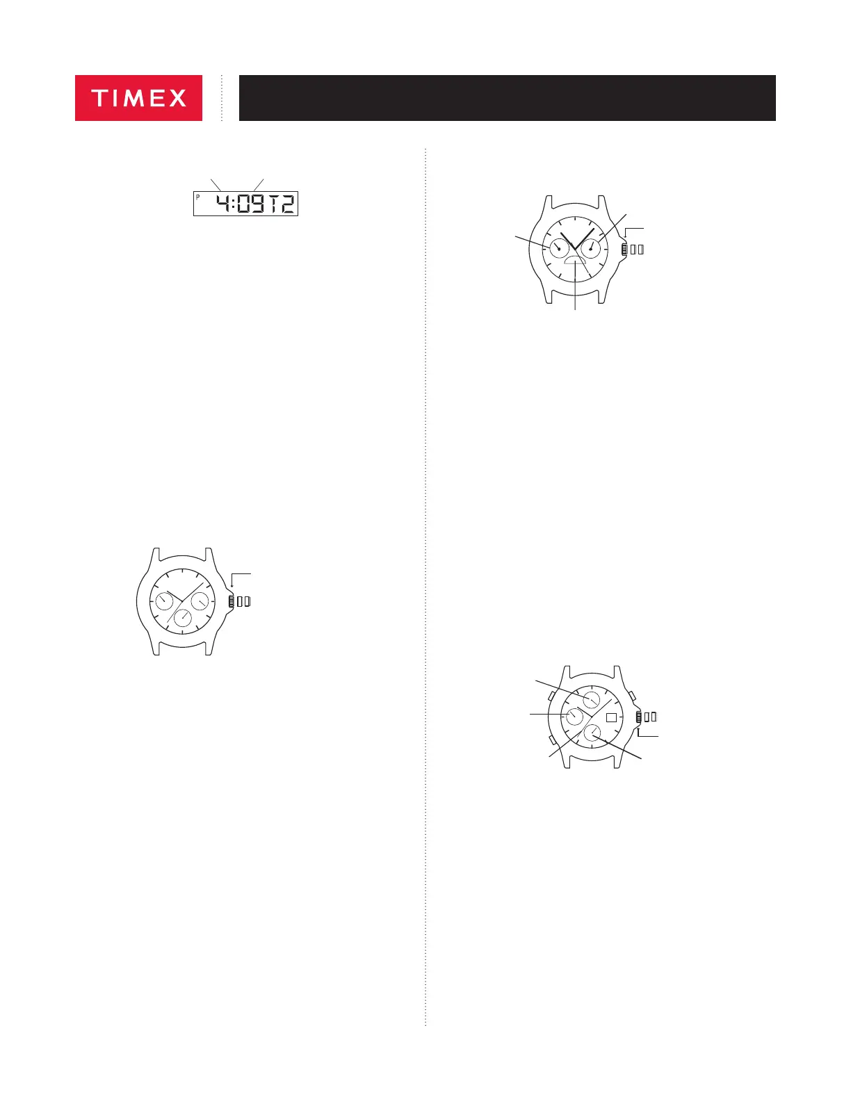 1. Tirer la couronne complètement et tourner jusqu’àacher l’heure exacte.