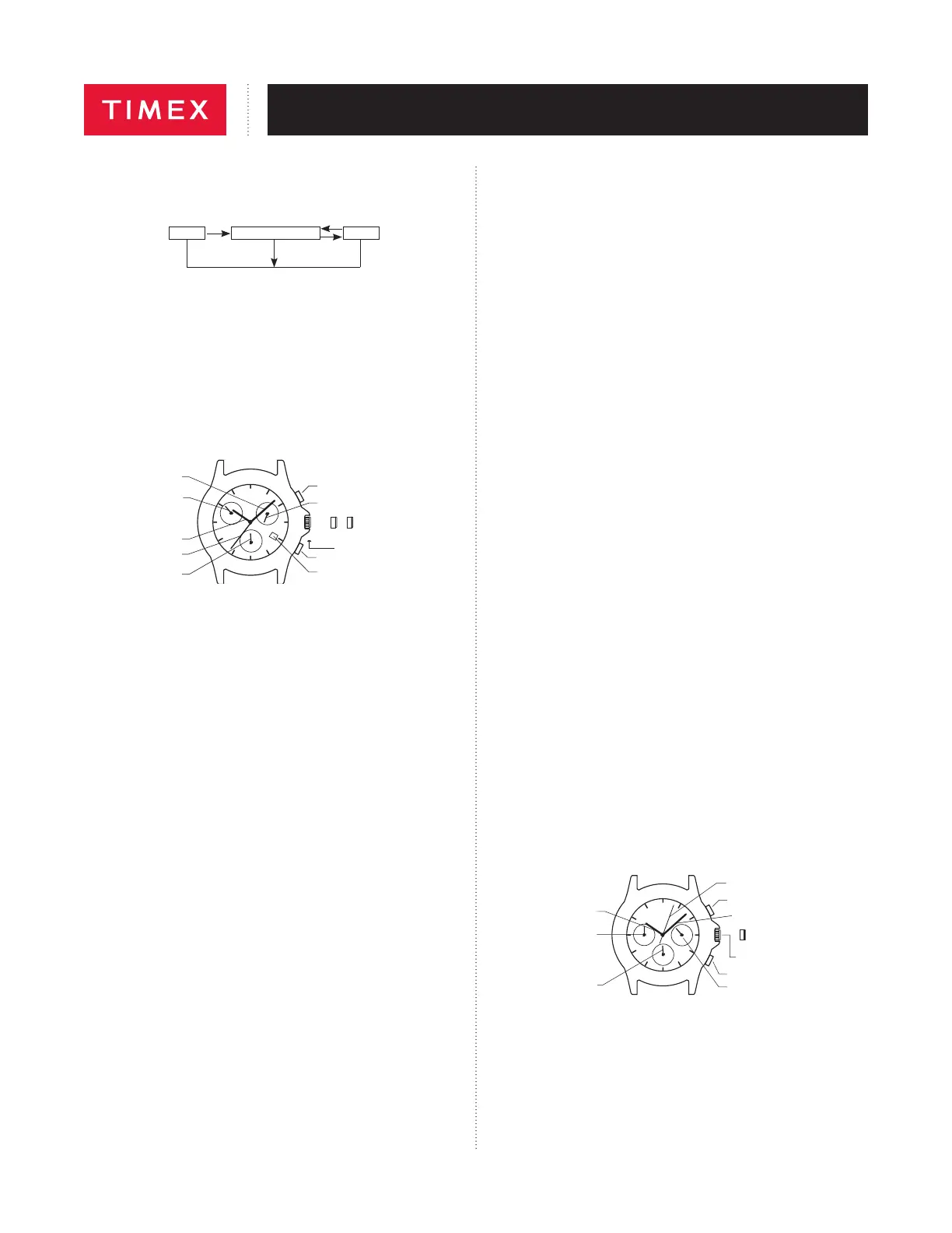* Korunku netlačte do normální polohy, pokud se sekundová ručička vrací na nulovou
