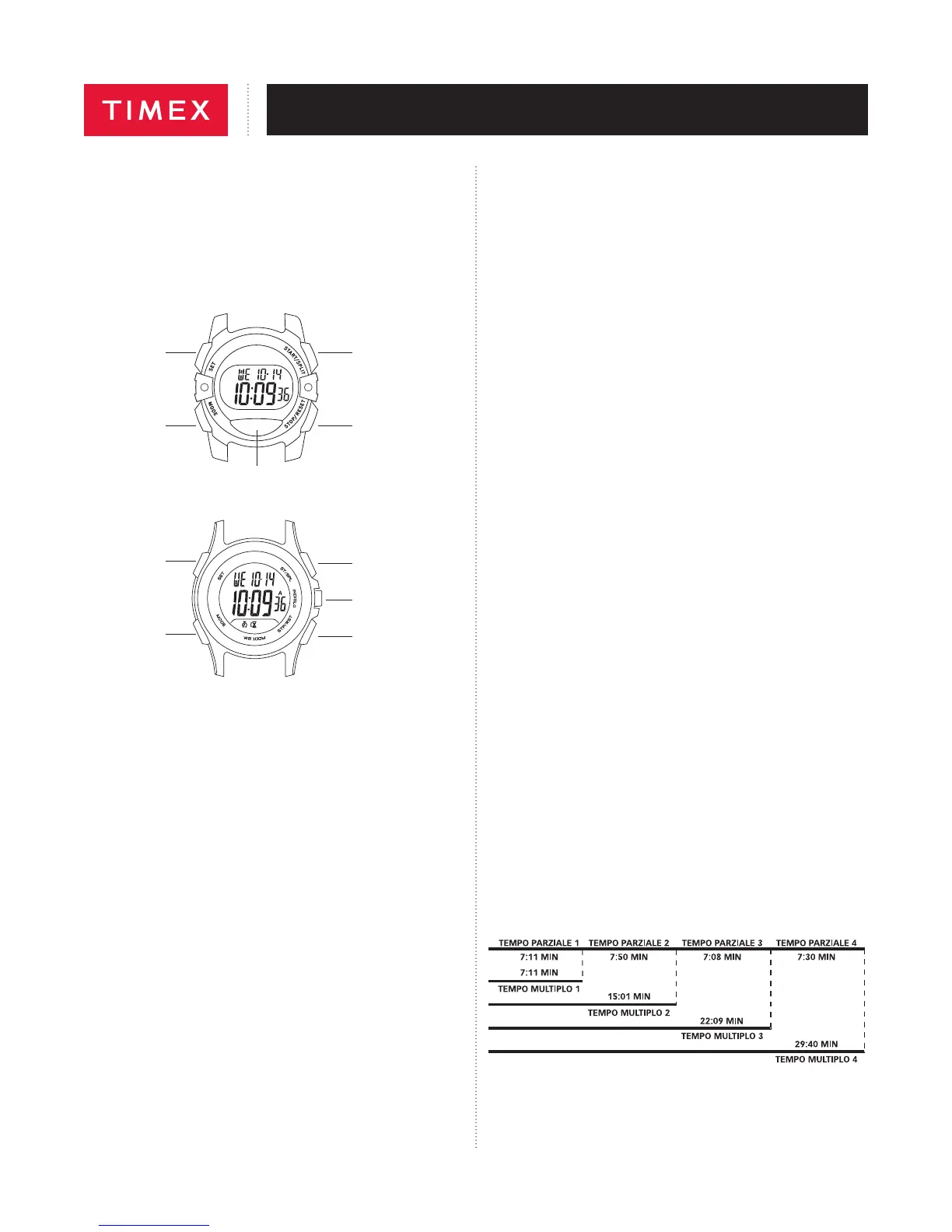 13. Dalla modalità Time, premere e mantenere premuto START/SPLIT per