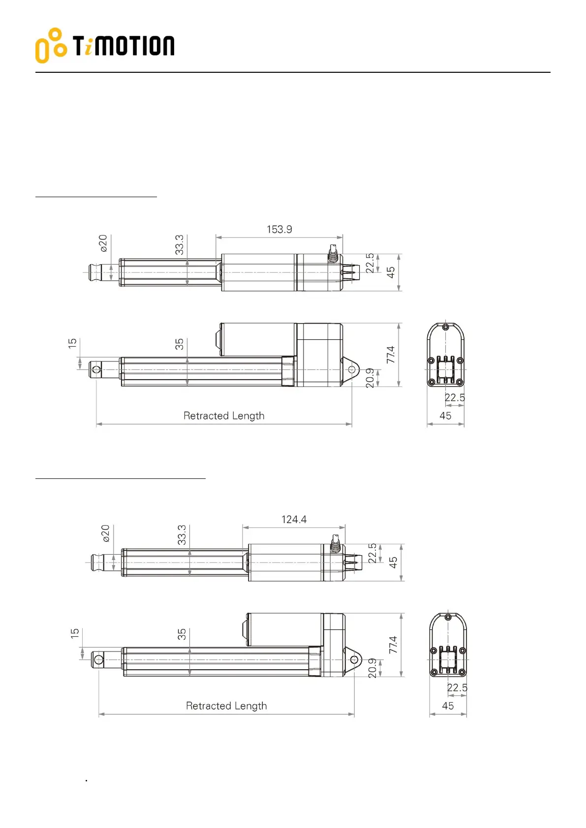 Timotion TA2P - Product Specifications; Drawings