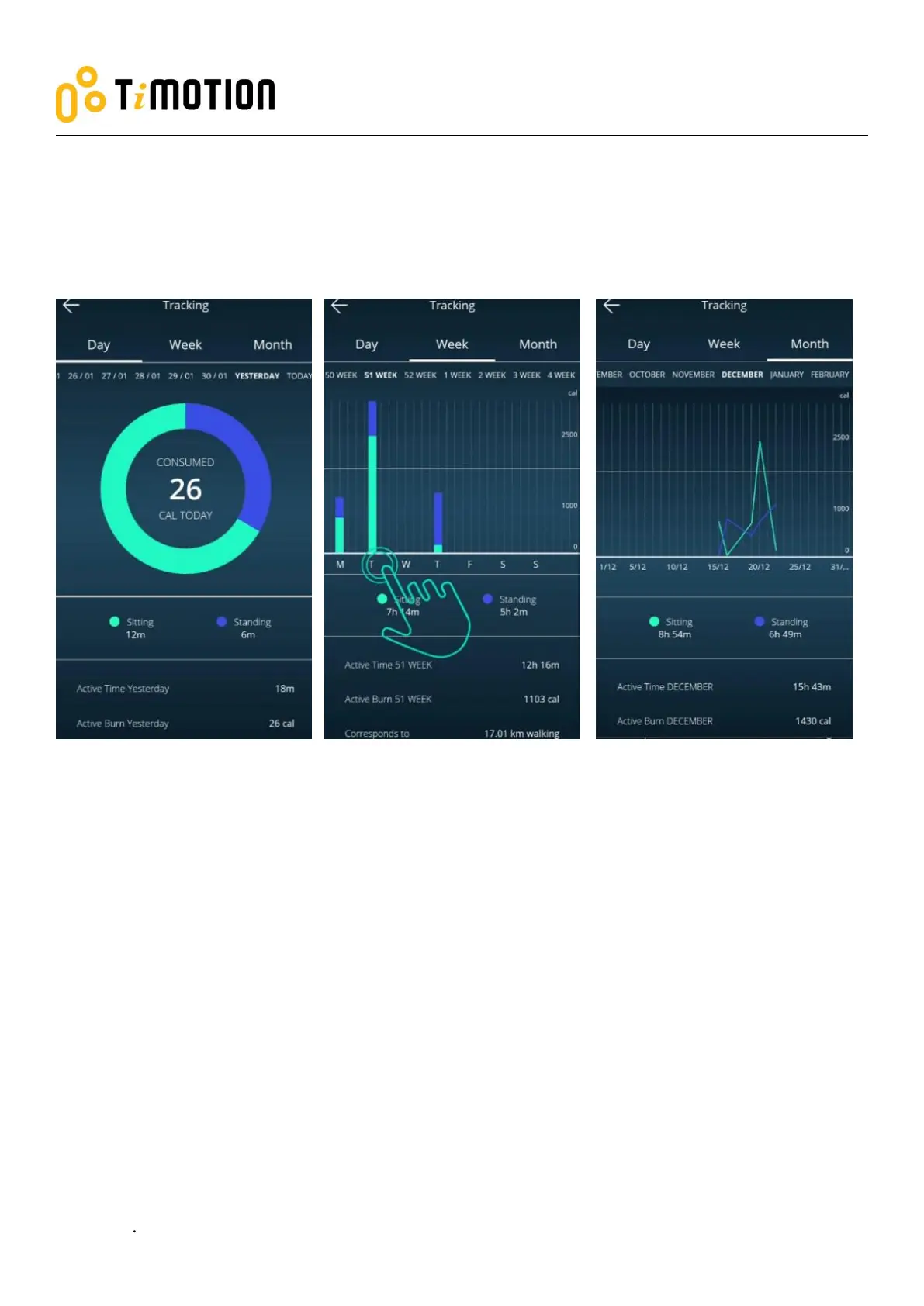 Users may track their standing and sitting time on a daily, weekly, or monthly basis. The data will display how