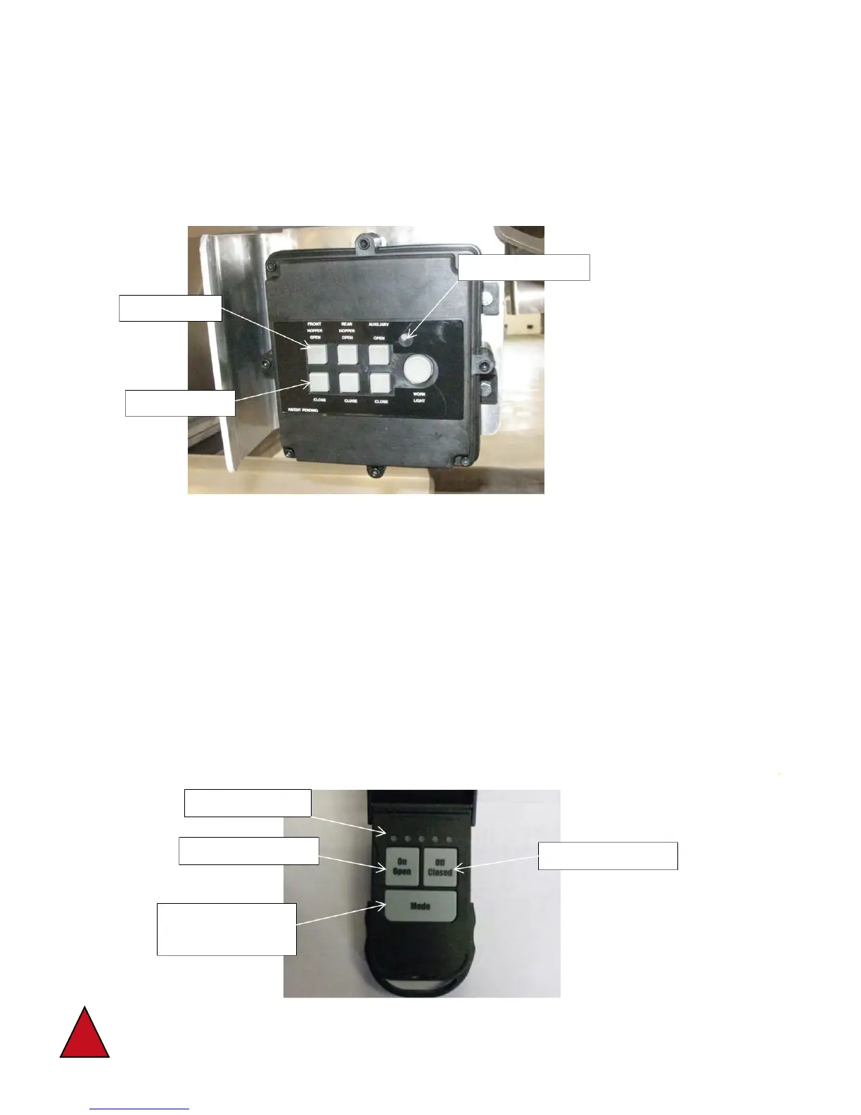 2. Power up Control Box. (Hold the Front Hopper “Open” or “Close” buttons on the control box