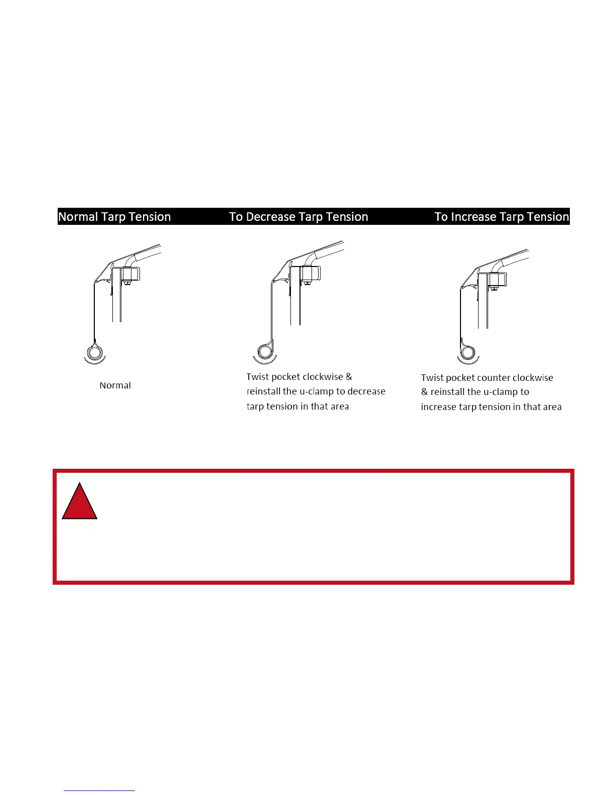 WARNING! DO NOT walk, stand or climb over or on the end caps. The tarp
