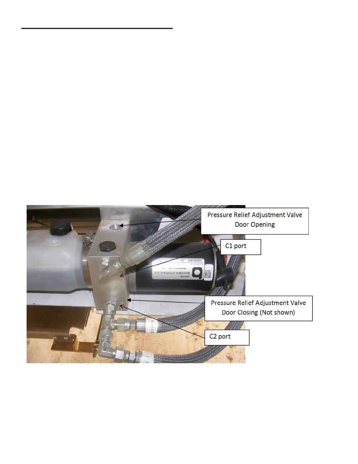 hose connections the ports on side of the pump are marked with “C1” and “C2”. The pressure relief on the “C1” side