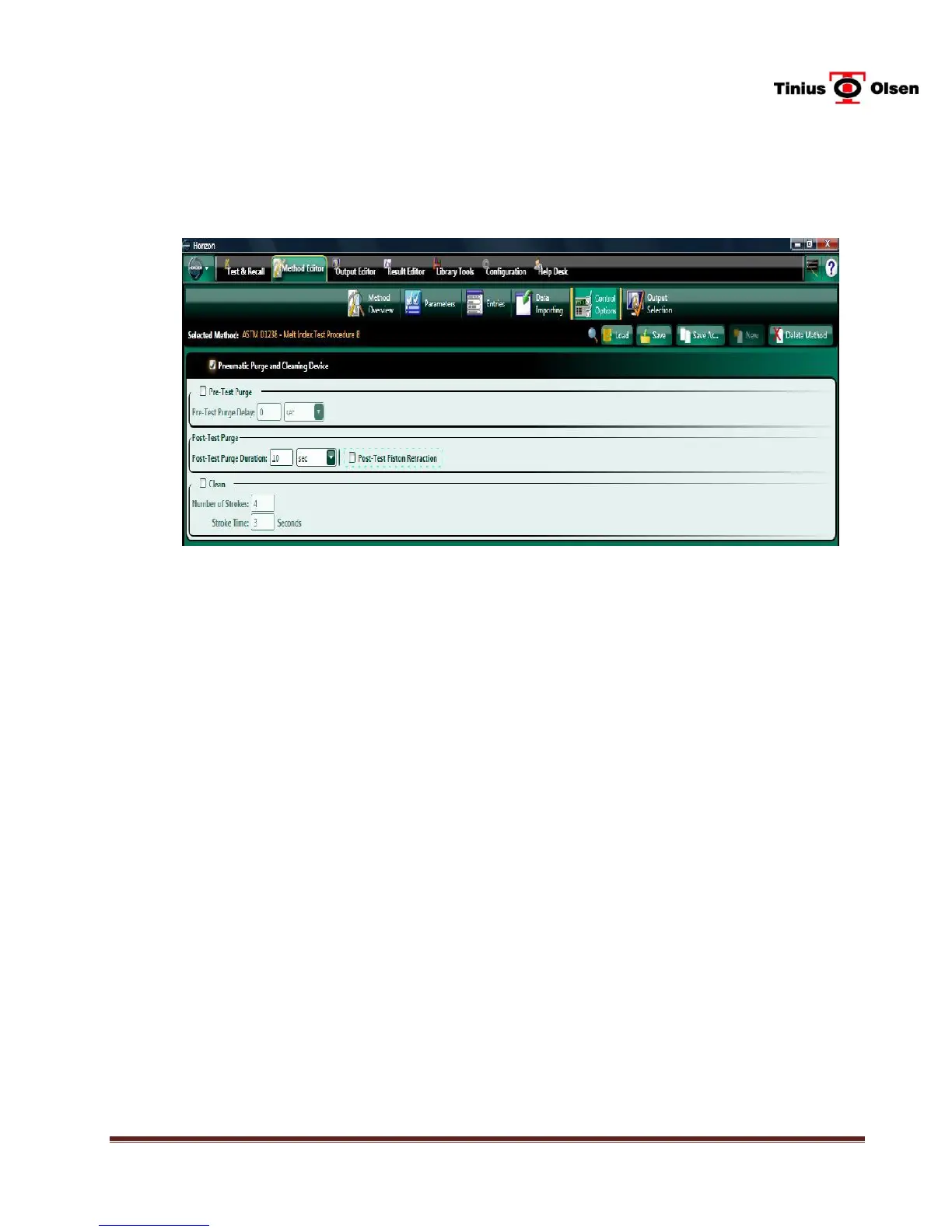 Enter a time for Post Test Purge Operation, if desired. The duration of the post-test purge