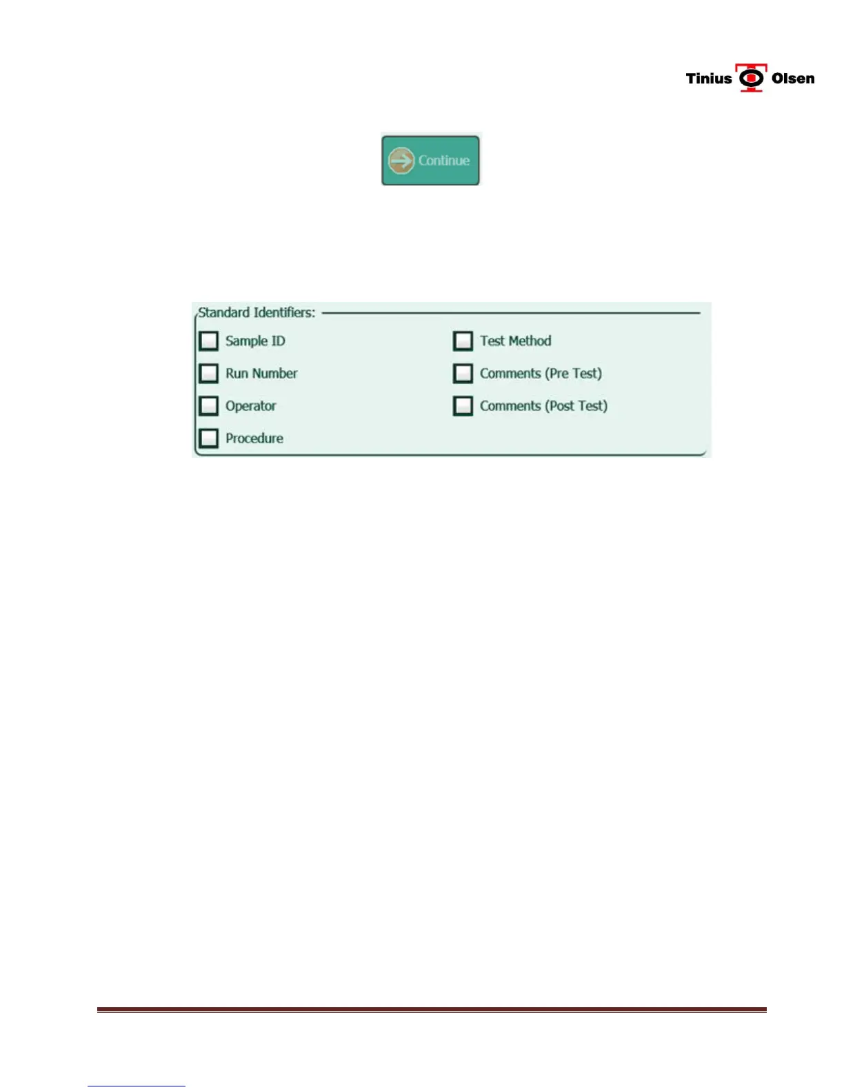 enter the run number, in alphanumeric format, prior to the test. A check mark