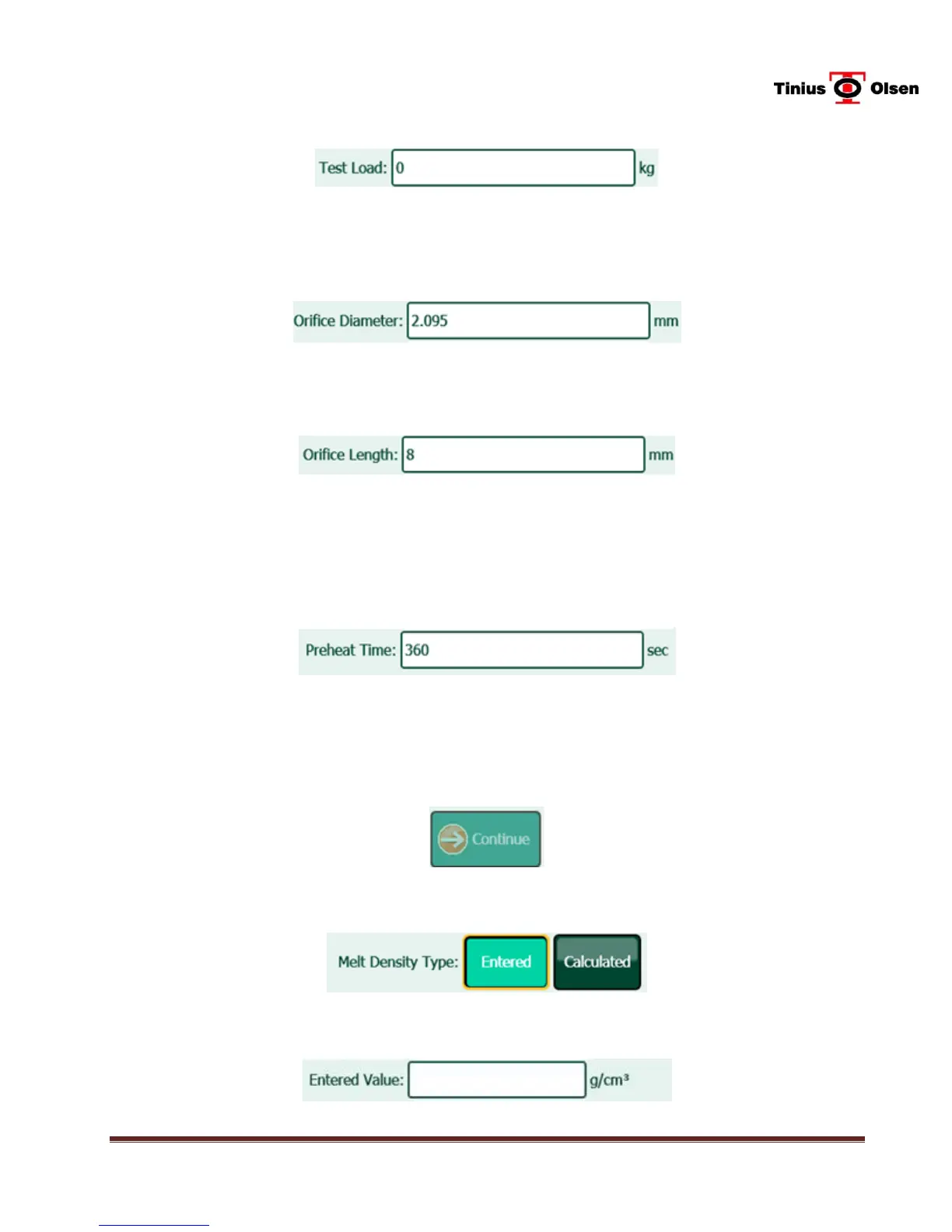 14.2.12Press the Entered button next to MELT DENSITY TYPE (assuming that the