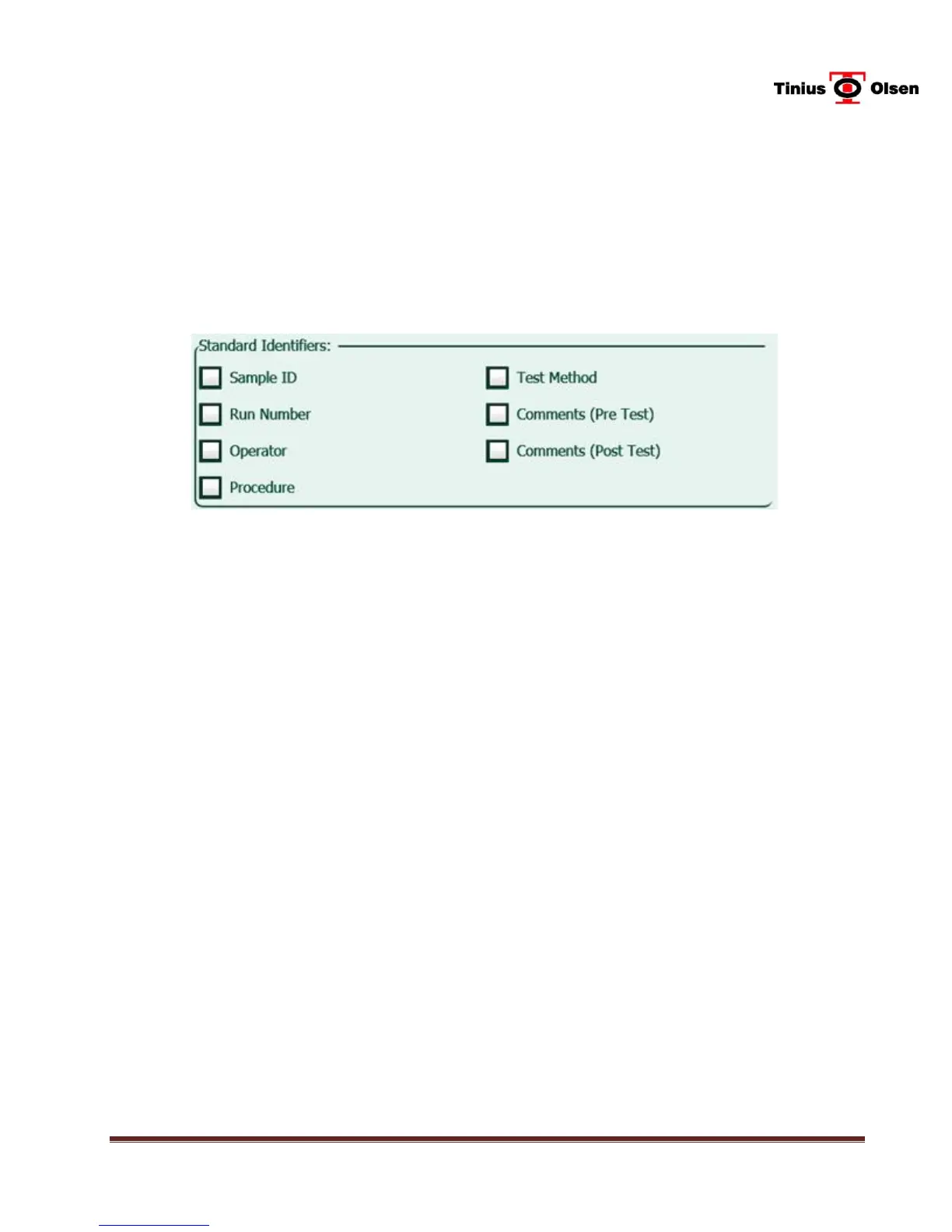 enter the run number, in alphanumeric format, prior to the test. A check mark