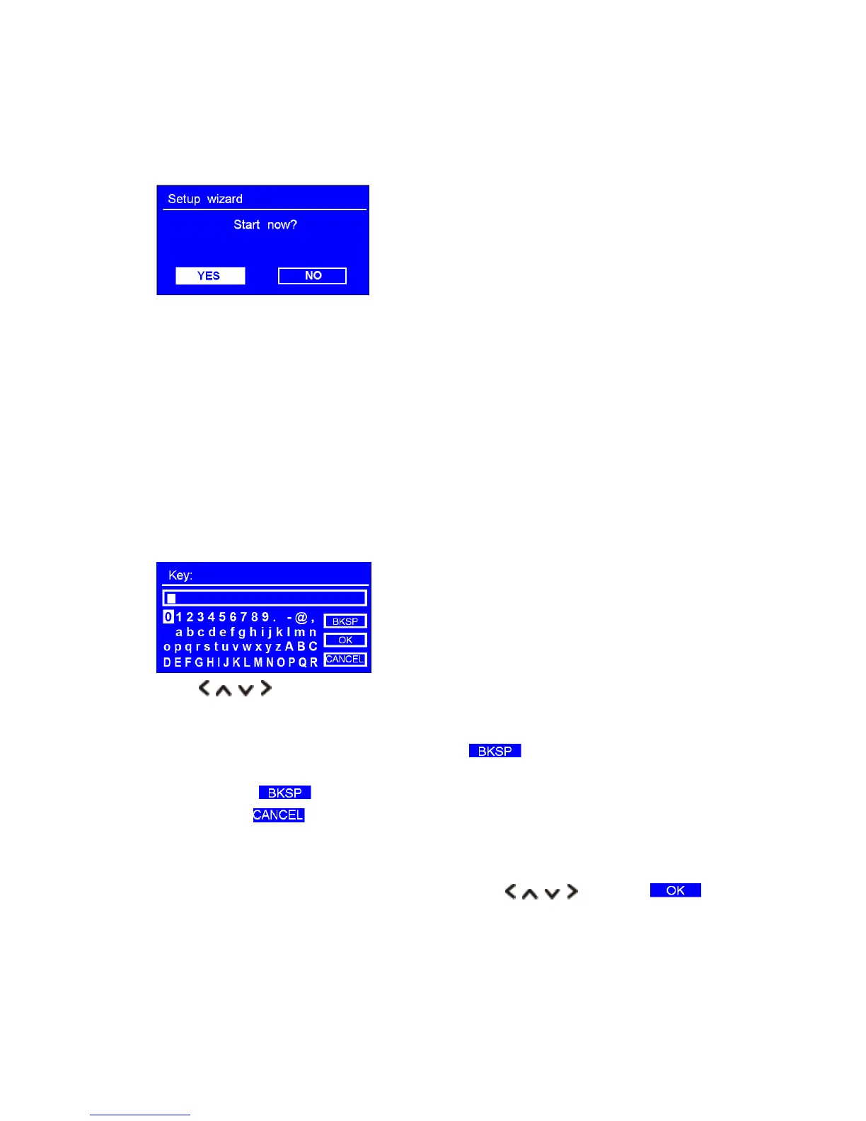 2. Press OK button to confirm ‘YES' to start setup. Options in the setup wizard include the following: