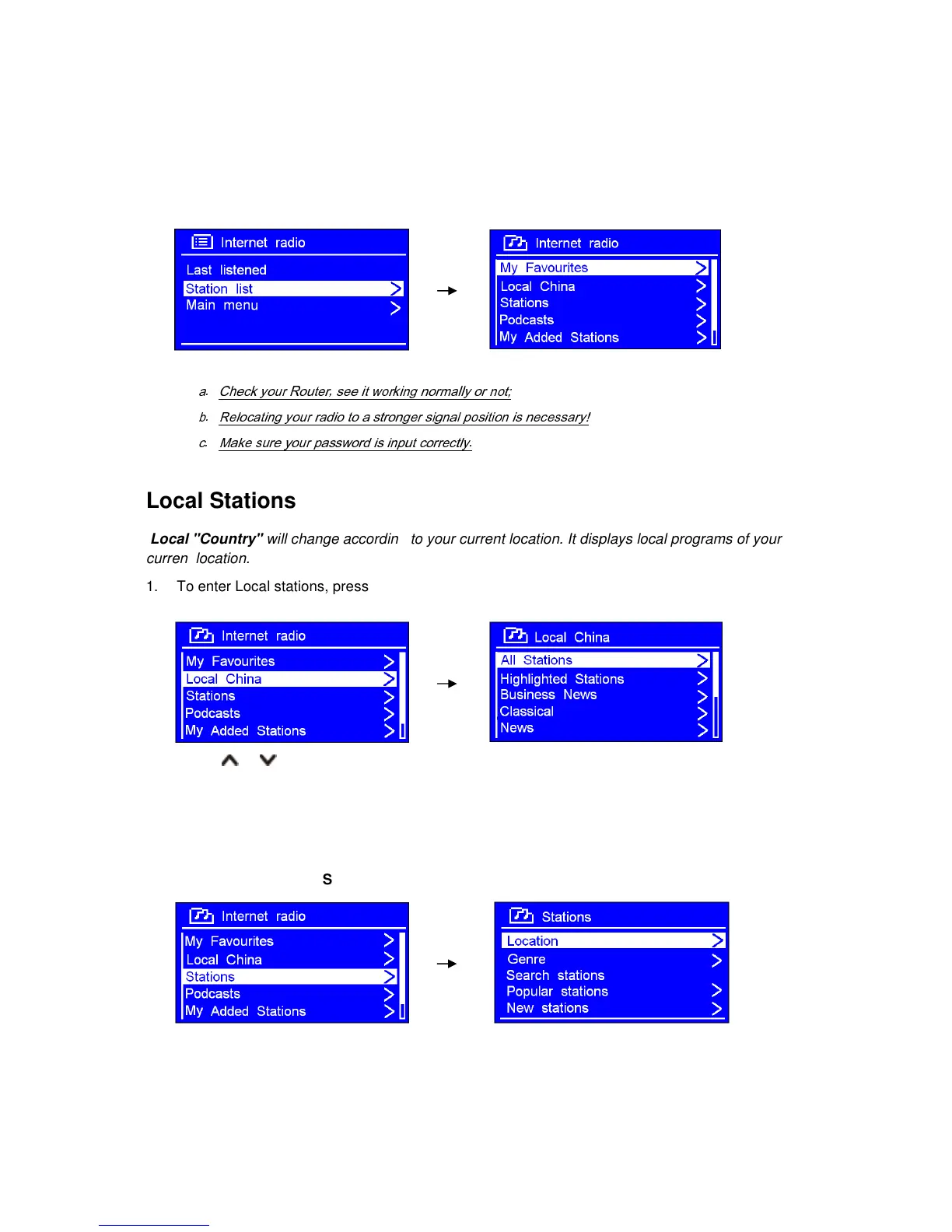 3. Then refer the following section to choose stations. If failed to connect to network, please follow: