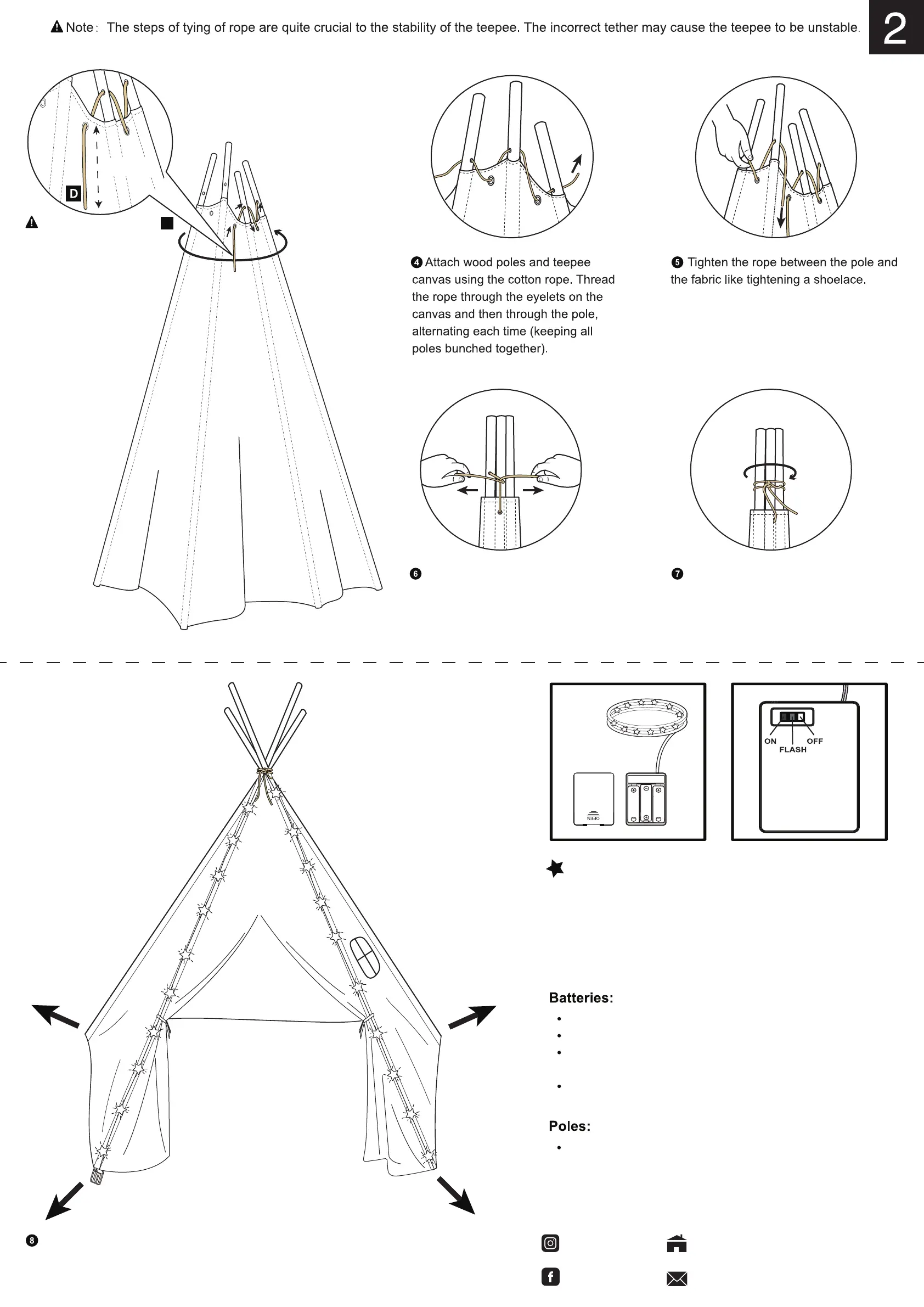 Ensure all teepee poles are fully extended and the fabric in each section is tight.