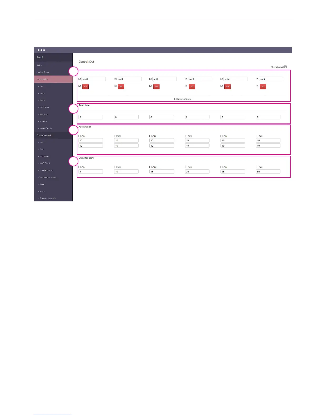4. Out after start - sets the delay in switching outputs after power (if it was turned on befo-