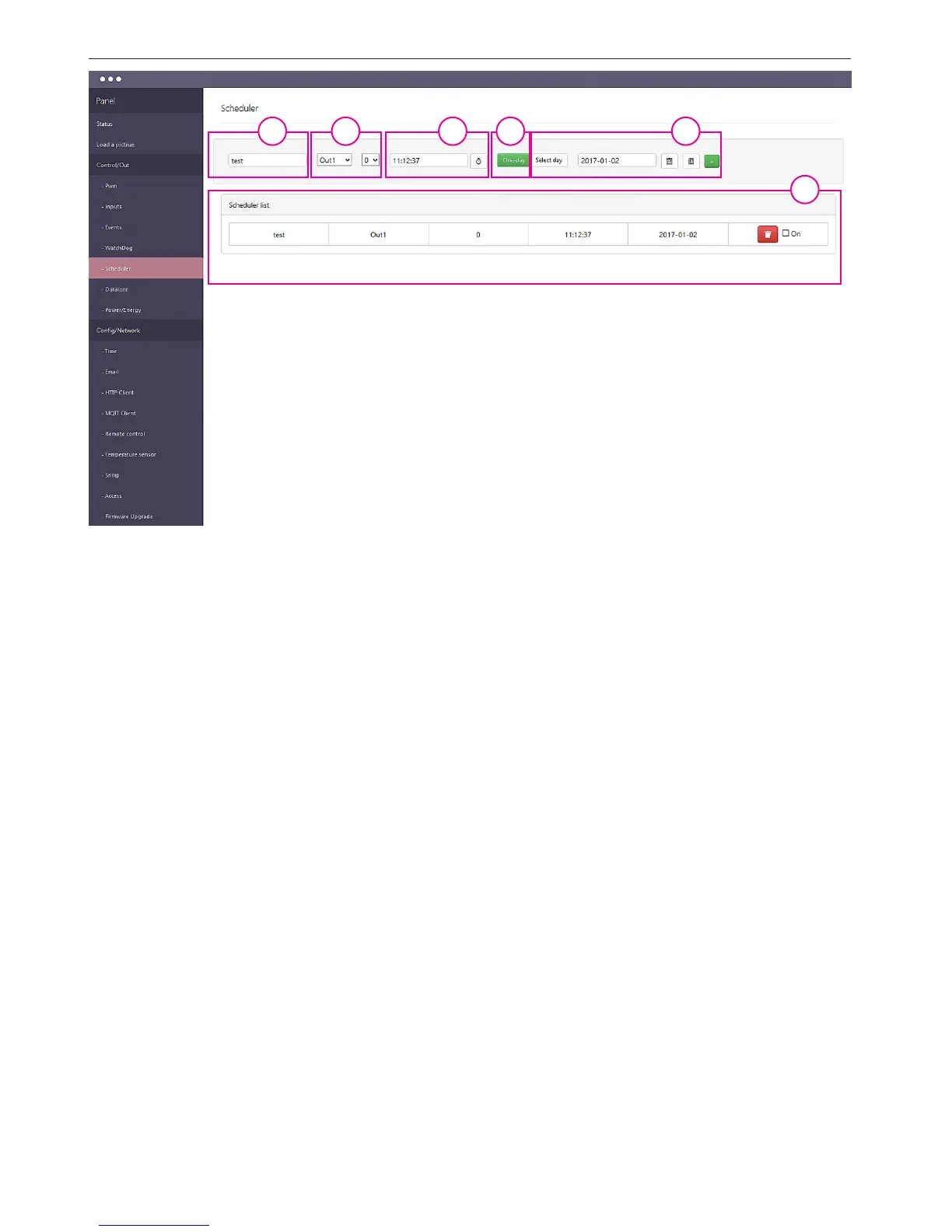 6. In the panel "Scheduler list" we have a set of events that can be removed, for example, in