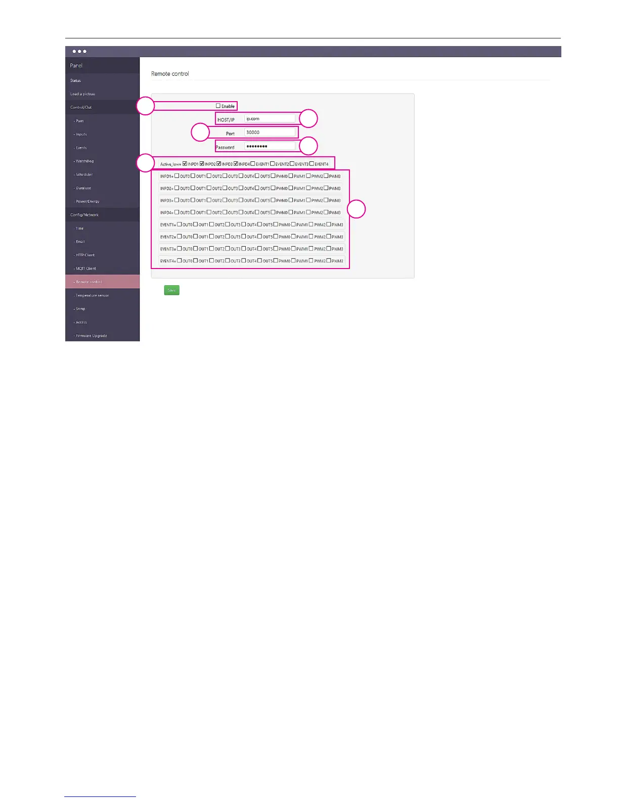 5. Active_low checkbox - for reversing output state (check on Client)