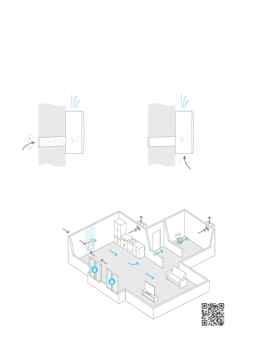 Takes air from outside • Purifies •