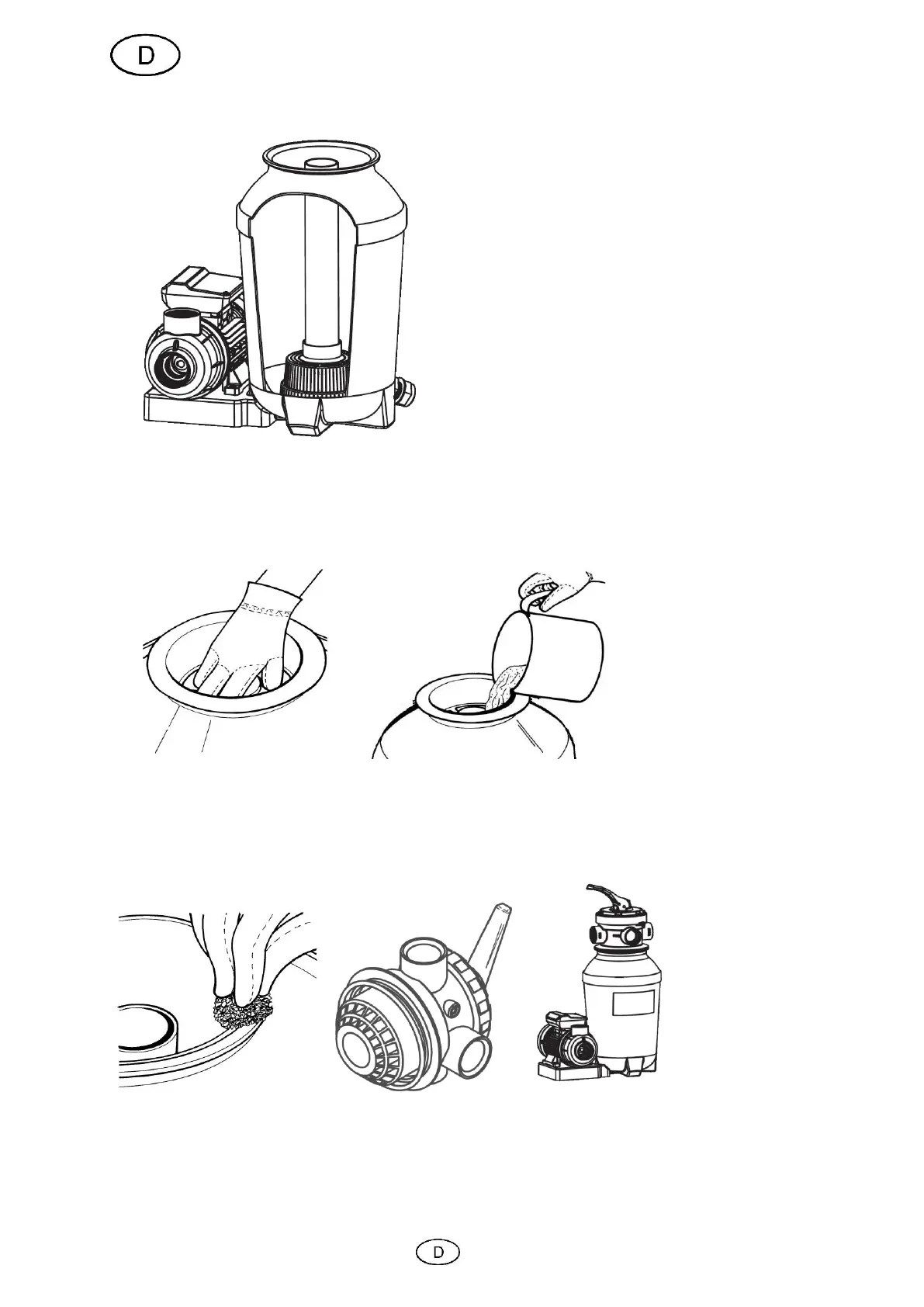 Um die Inbetriebnahme zu erleichtern, wird empfohlen, den Sandfilterbehälter zu ¾ mit Wasser zu befüllen.