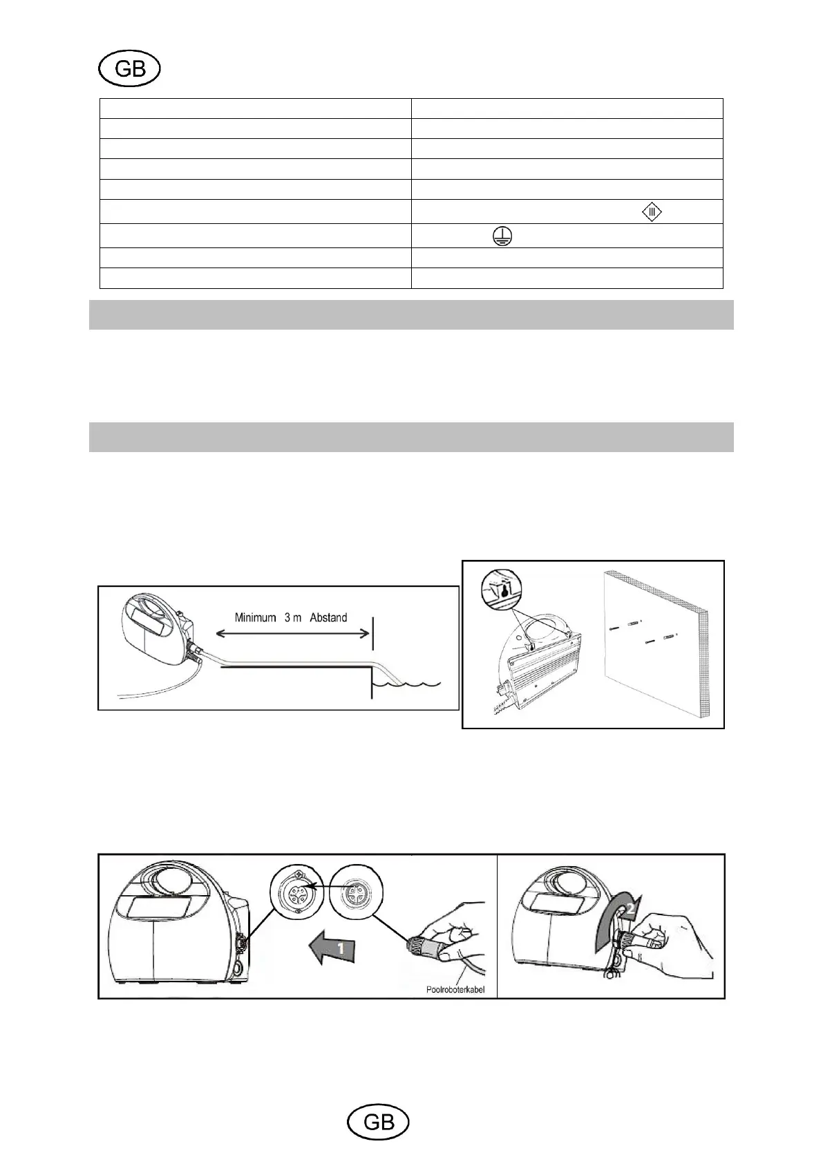 A pool robot with connection cable, switch box (transformer) with connection cable, filter baskets, operating man-