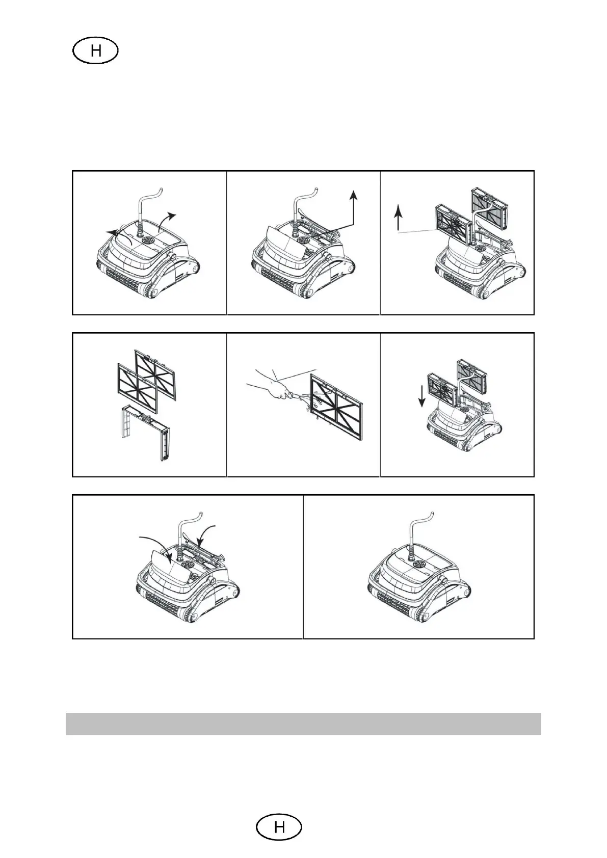 • Távolítson el minden szennyeződést és vizet a medencetisztító robot belsejéből.