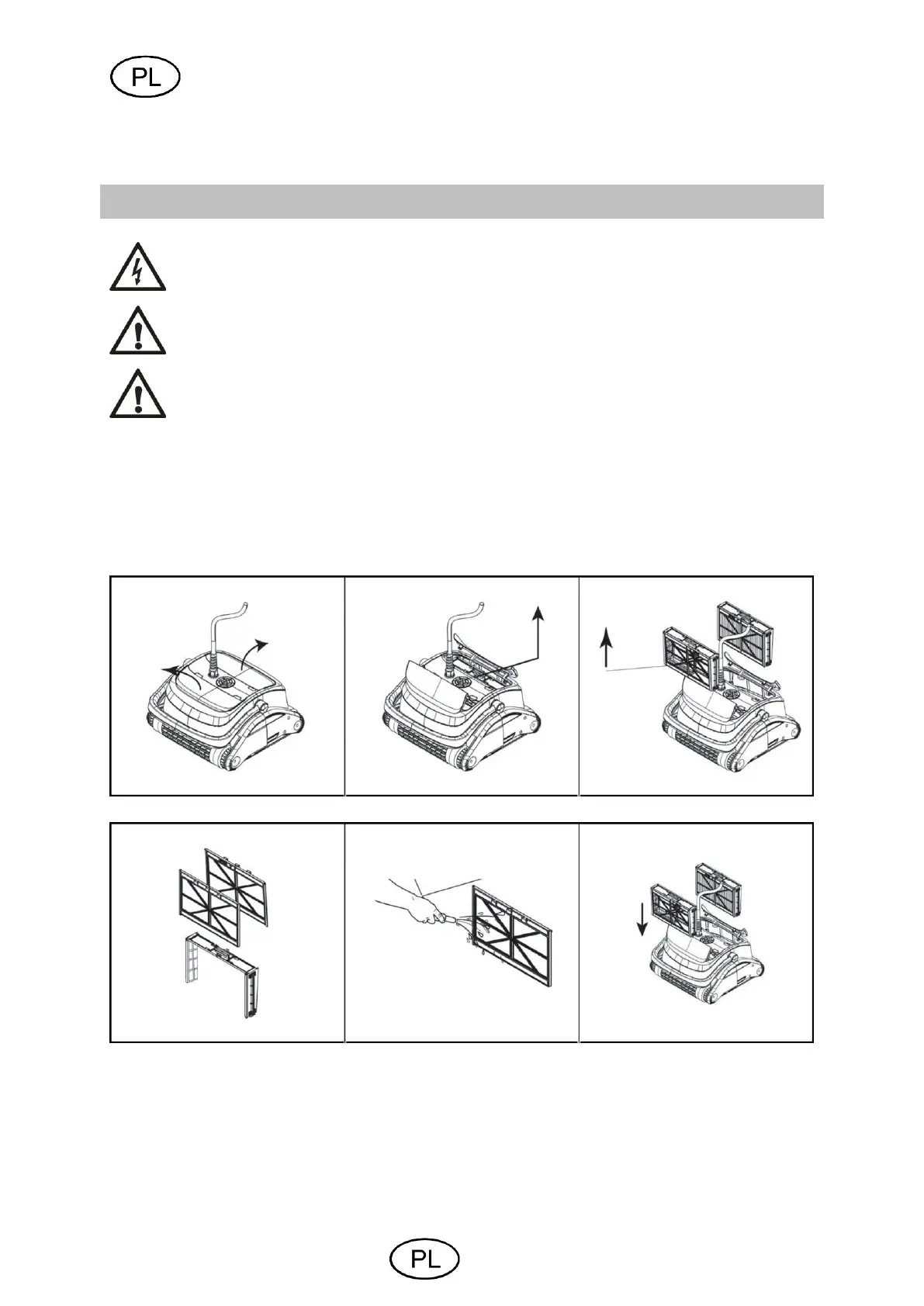 • Proszę usunąć wszystkie zabrudzenia i wodę z wnętrza robota basenowego.