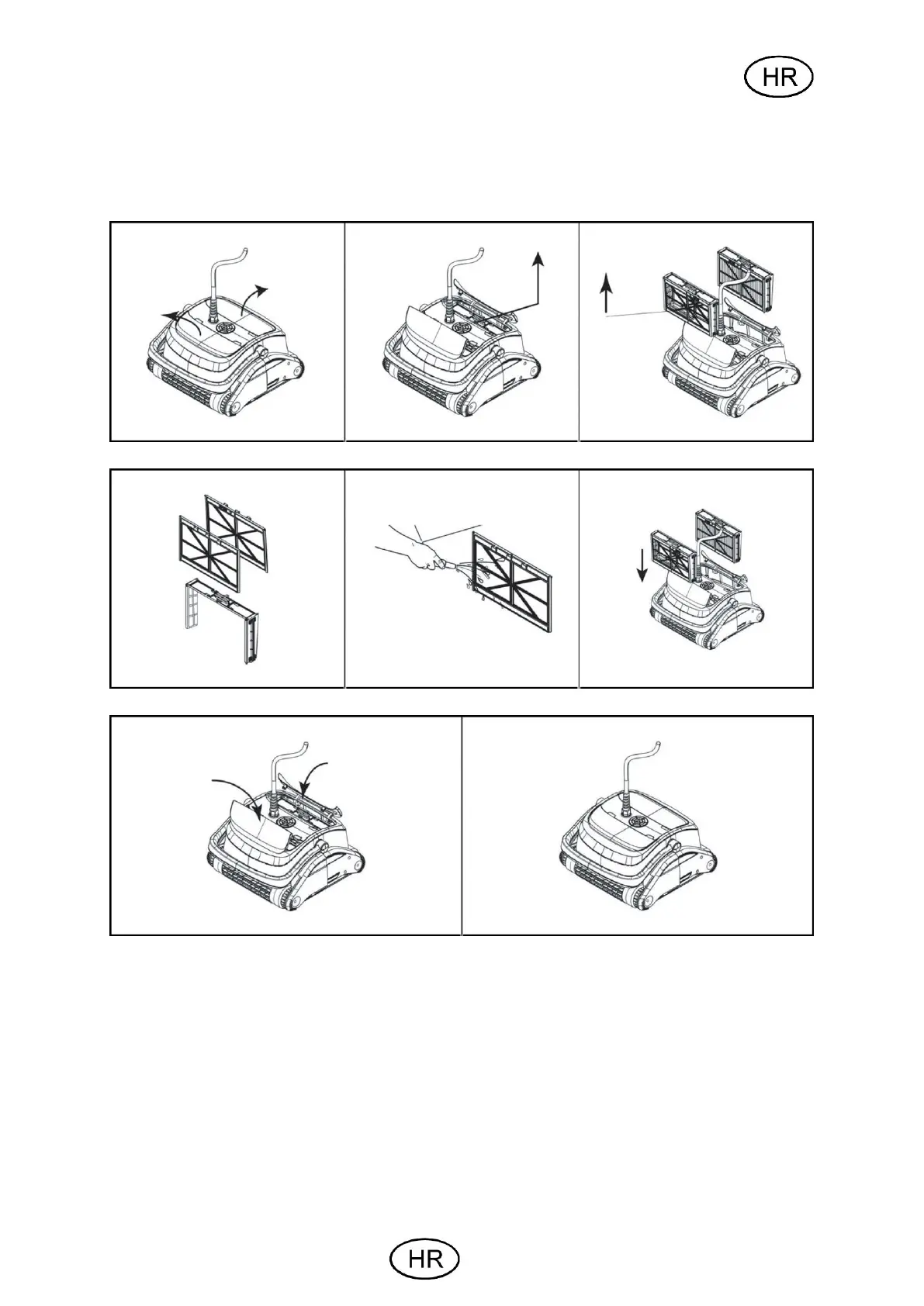 • Molimo uklonite svu prljavštinu i vodu iz unutrašnjosti bazenskog robota.