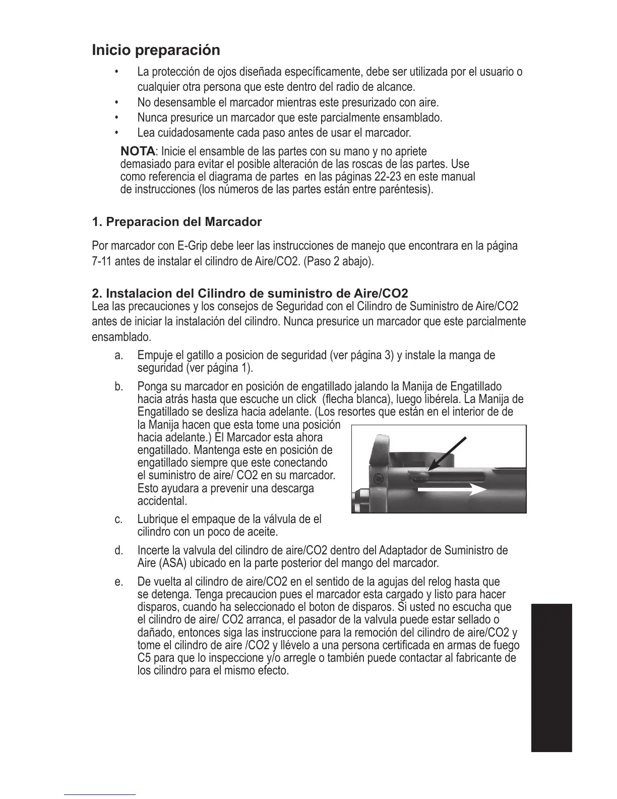 a. Empujeelgatilloaposiciondeseguridad(verpágina3)yinstalelamangade