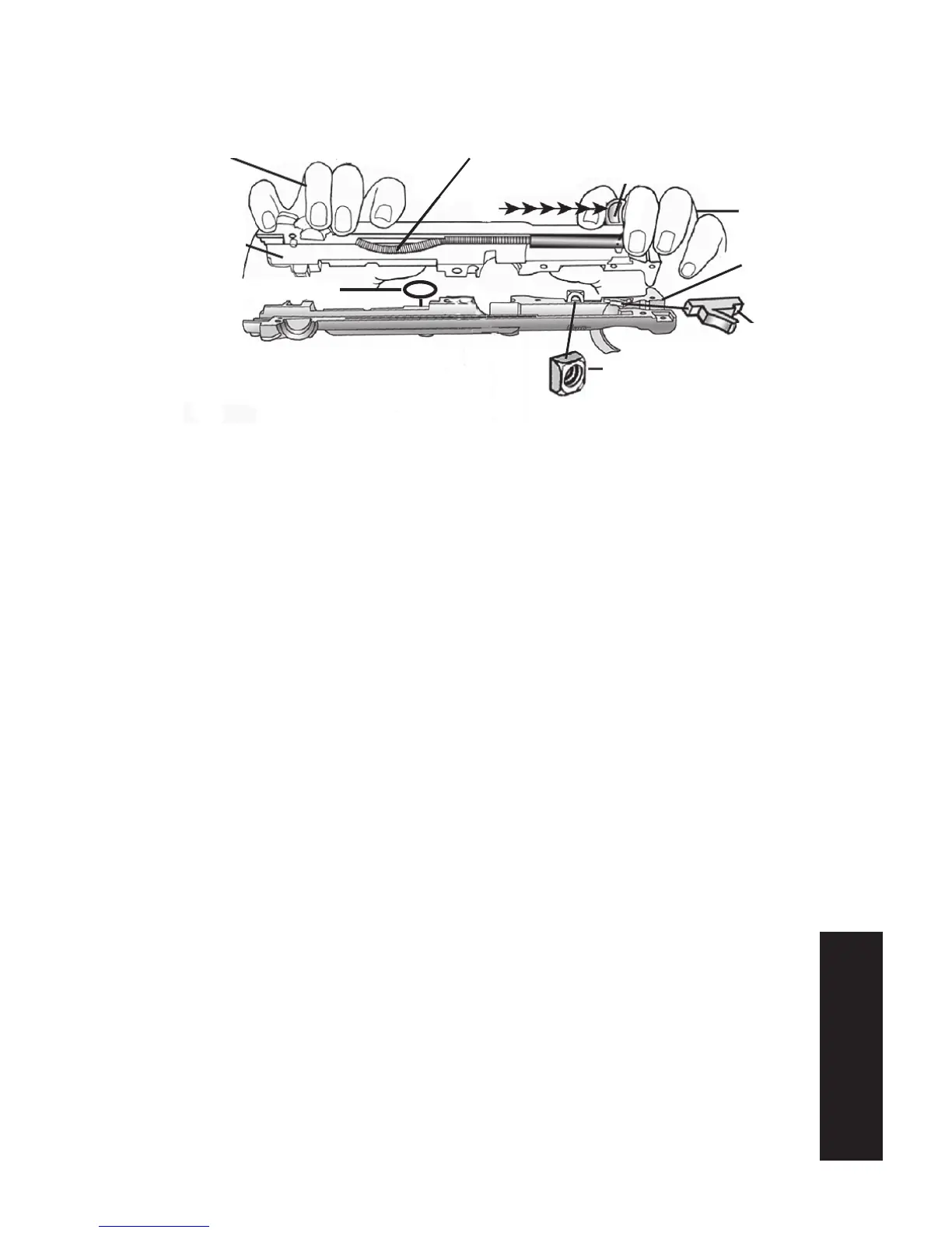 derecha para colocar el mango del gatillo y el resorte dentro de la ranura de la mitad
