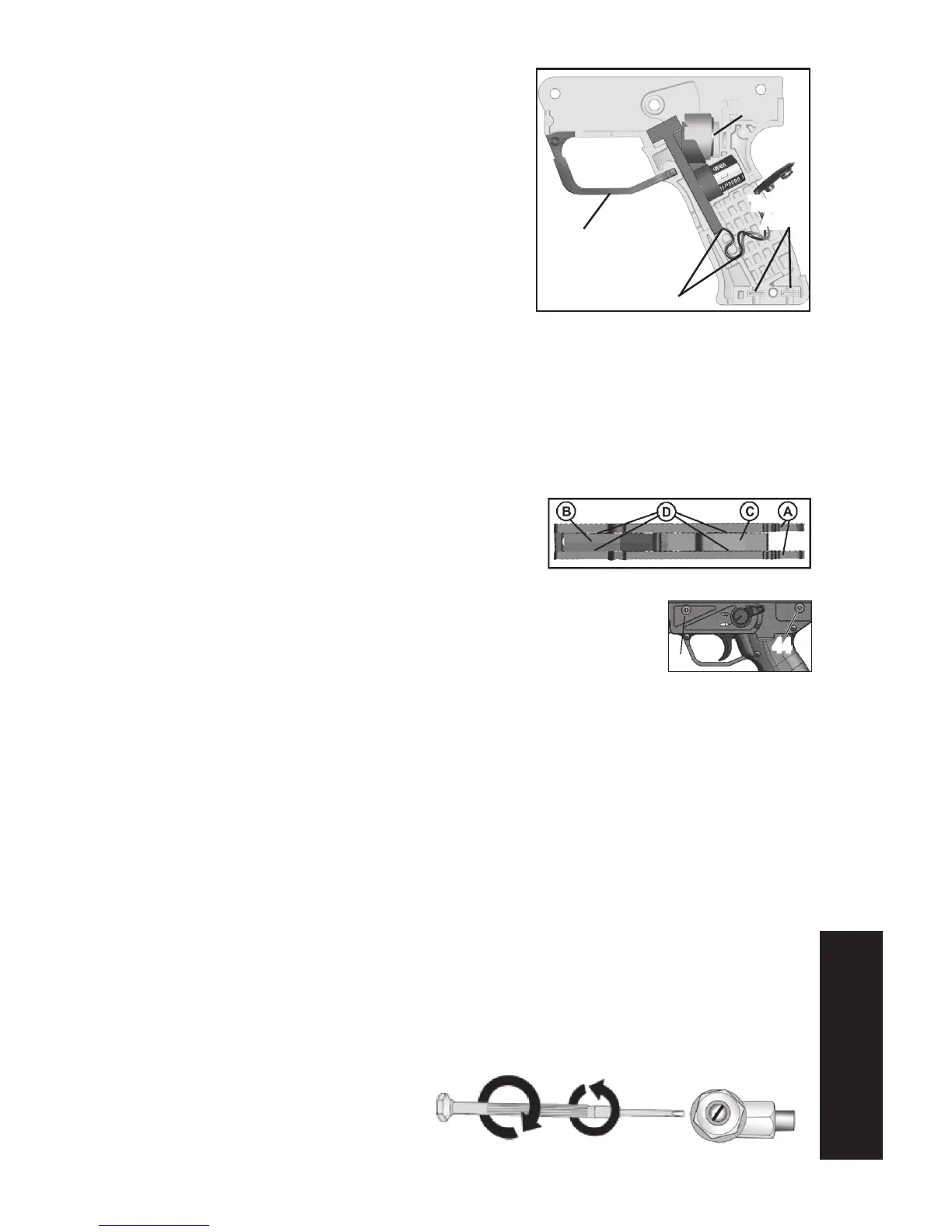 las placas del Gatillo (A) y el Gatillo (B) o el cierre