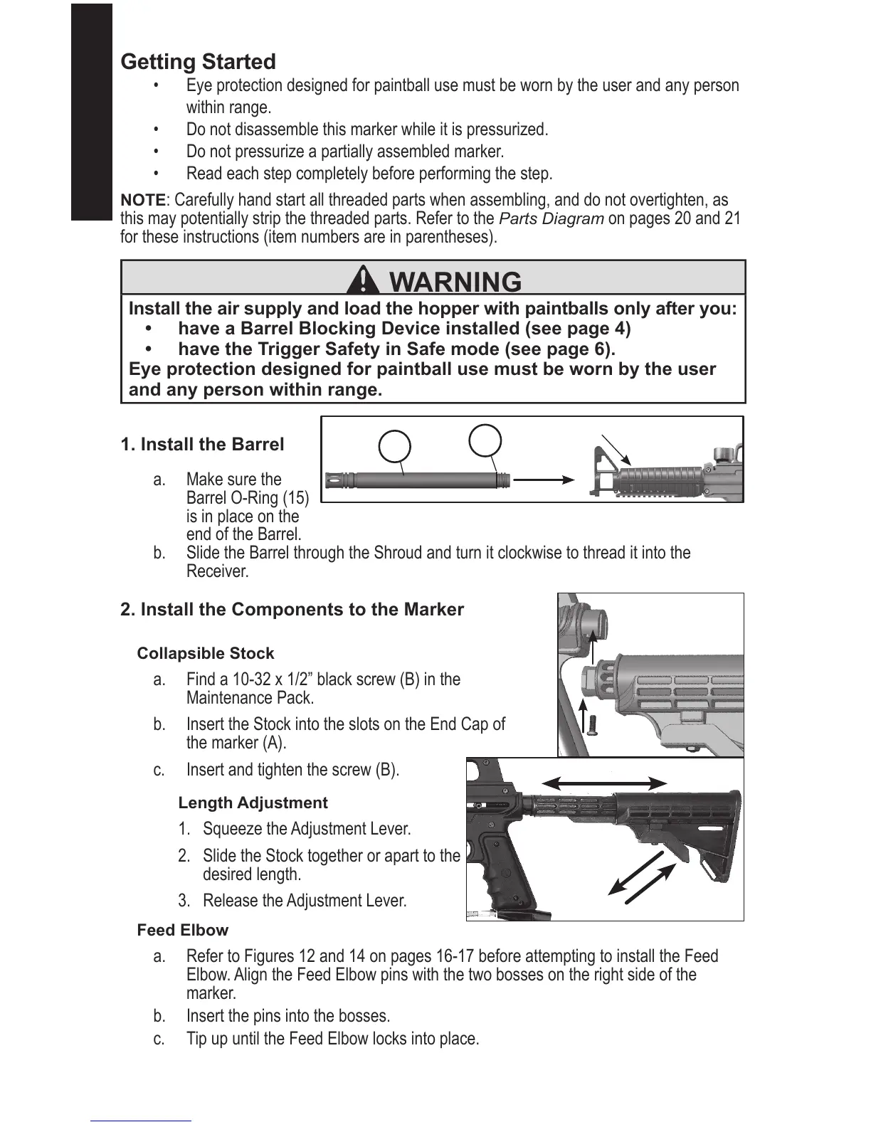 Install the air supply and load the hopper with paintballs only after you: