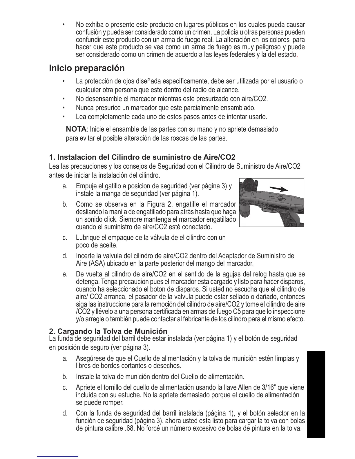 a. Empujeelgatilloaposiciondeseguridad(verpágina3)y