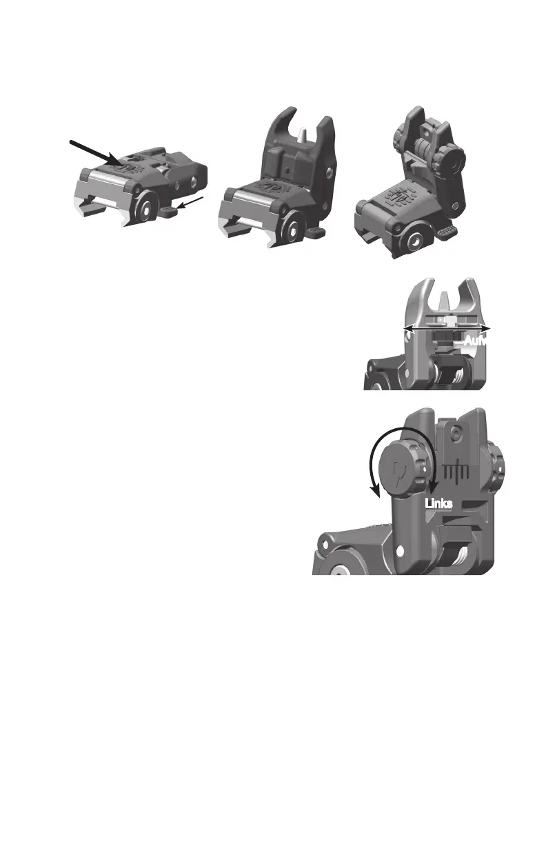 Das vordere Klappvisier und das hintere Klappvisier können sich in zwei Positionen benden.